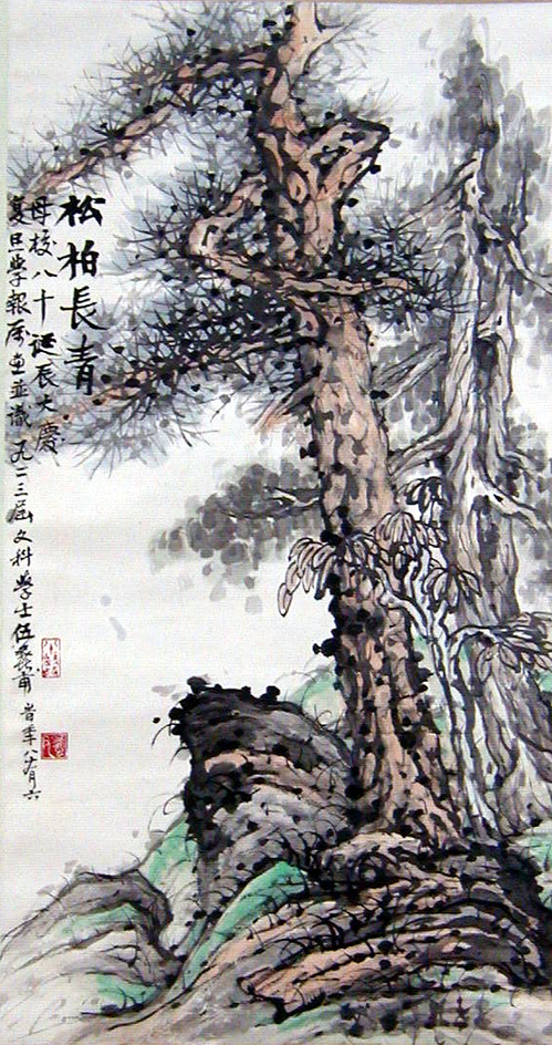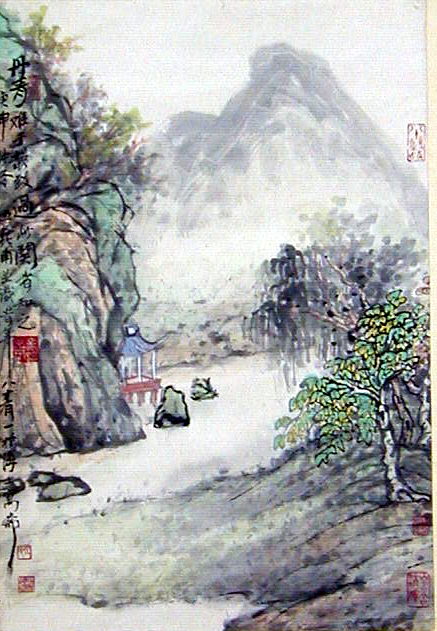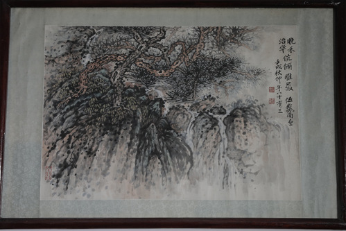 伍蠡甫教授从1913年开始就流连于中国山水画。他曾在重庆、成都、昆明、香港等地举办个人画展,饮誉画坛。抗战期间,伍先生把画展所得的万元巨款捐献给了政府以支持抗日战争,此事《大公报》上曾以《艺人楷模》为题作过报道。伍蠡甫先生的绘画作品富有创新精神,晚年之作尤为苍劲有力,融合自然与传统、中法和西法,以意境隽永、书卷气浓郁的学者画风而著称于画坛,常使人目迷心醉,赞叹不已。陈望道老校长曾评价伍先生的画“实是种革新,一种缔造,它在文化上的价值极高,不能与寻常的国画等量齐观!”郭沫若为伍蠡甫先生的《山田图》、《峡船图》题长诗,徐悲鸿特引杜甫诗句“元气淋漓障犹湿”相赞许。丰厚的学养使伍先生的绘画中融人了深远的意境和浓郁的书卷气,岭南派的大师高剑父这样评价他的绘画:“雅得石涛之旨,而有新意”,“峰峦浑厚,草木华滋,时而千峦万壑,时而水净林空,一望饶有古人意,而却是自己的画。”
