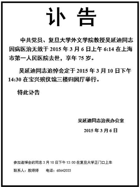 吴延迪教授讣告