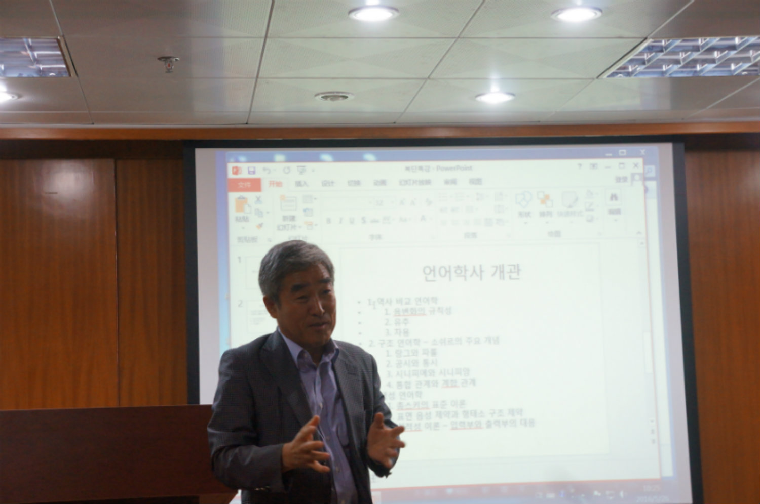 2016年5月26日,外文学院韩语系举办了两场专题讲座,文科楼209室座无虚席,参与人员为韩语系的全体师生。