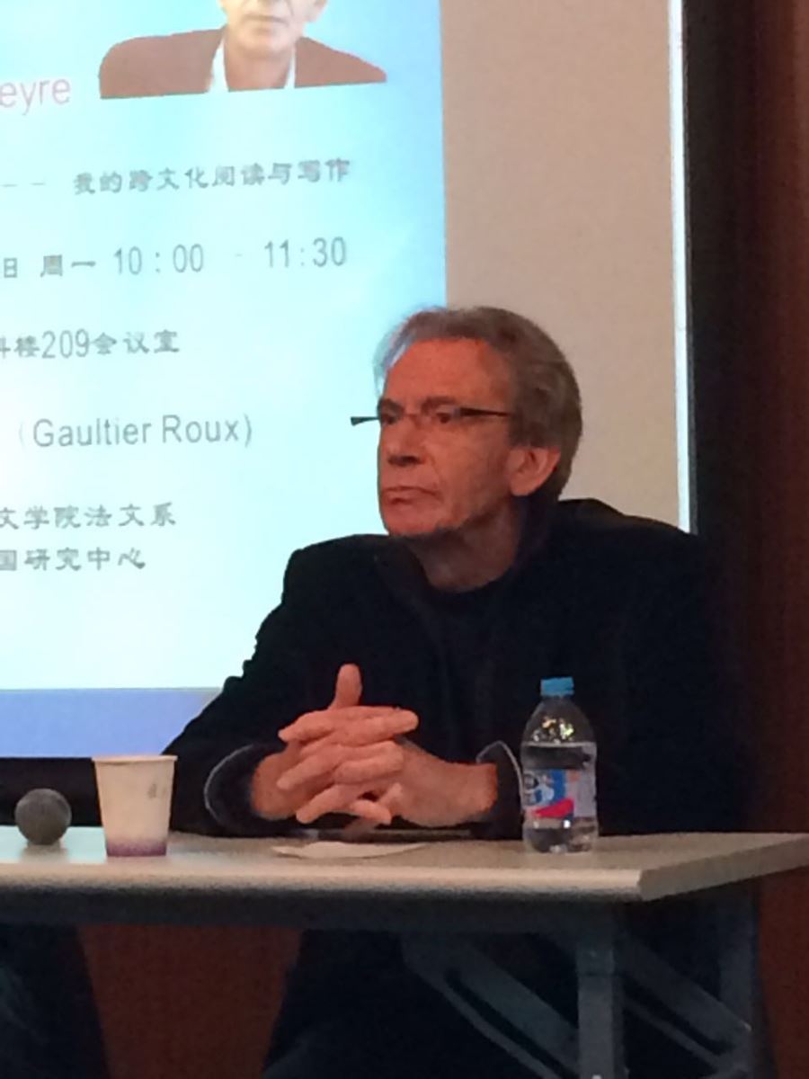 Lapeyre先生还介绍了自己的写作经验。他说,虽然自己平时会用小卡片记录下生活中可能被用作文学素材的瞬间,思考自己的小说要如何实现文学技巧的革新,却不喜欢在下笔写作前就为自己定下提纲,而是给自己的创作留下一定的自由空间。因此他往往是在一部小说快要写完时,才找到一个合适的题目。