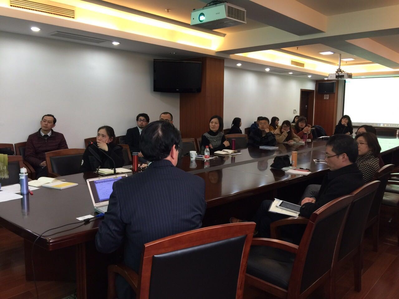 在一个半小时的讲座之后,张麟声教授还与大家进行了将近两个小时的学术交流,在类型学研究、语义学研究、二语习得研究等方面为大家全方位答疑解惑。正如张老师后来所说:“这次讲座是我这十几年来国内外近百场讲演当中学术气氛最浓的一次”,相信在这样的气氛渲染下,每一个到场的人都有自己的学术收获。