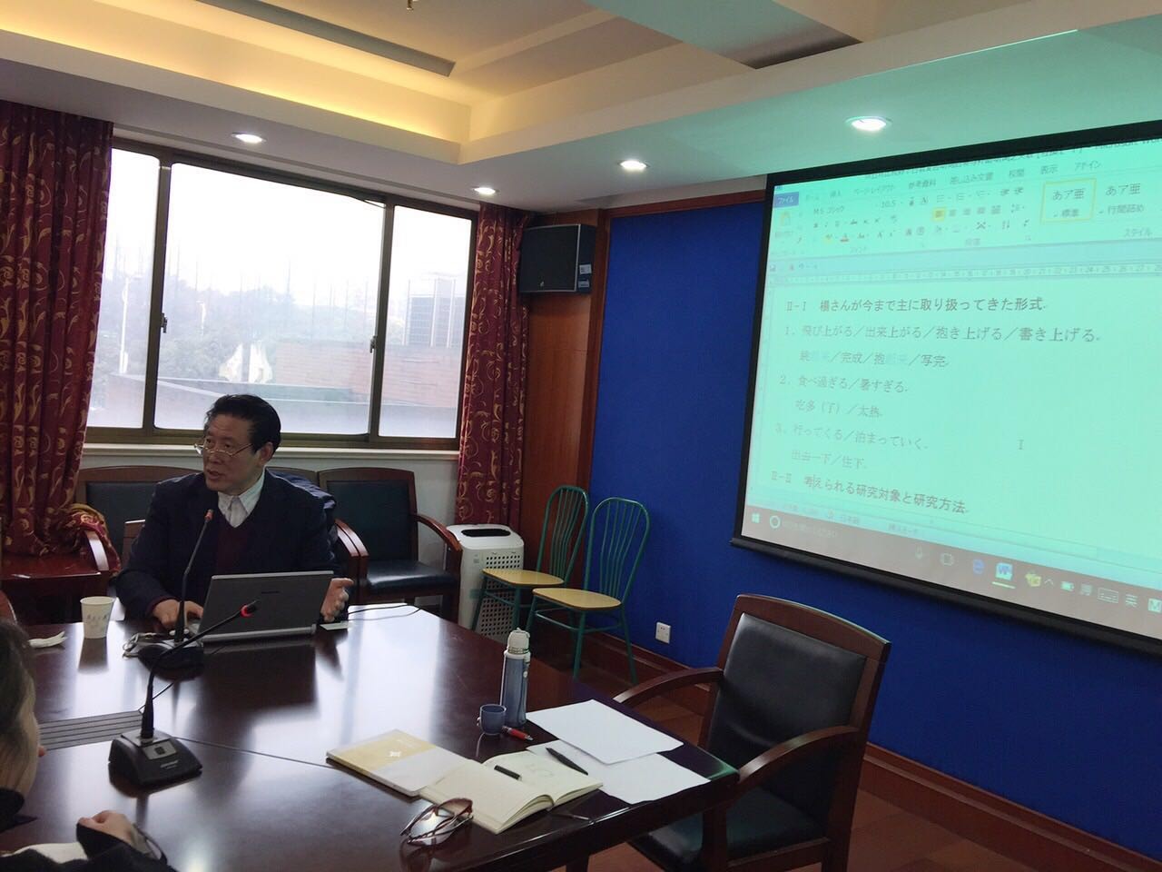 张麟声教授首先谈到他的“对比研究”观,认为“对比研究”可反馈于语言研究,如为描述性的语言研究提供视角或为捕捉语言的类型学特征提供辅助,也可反馈于语言教学,如为探讨母语迁移提供线索。之后张麟声教授以日语“てくる/ていく”为例,重点讲述了如何通过对比研究来进一步深化语言的描述,并指出在分析日语复合动词后项或补助动词时,可将汉语连动结构、动补结构、合成动词纳入视野,从而使其成为深化研究的突破口。