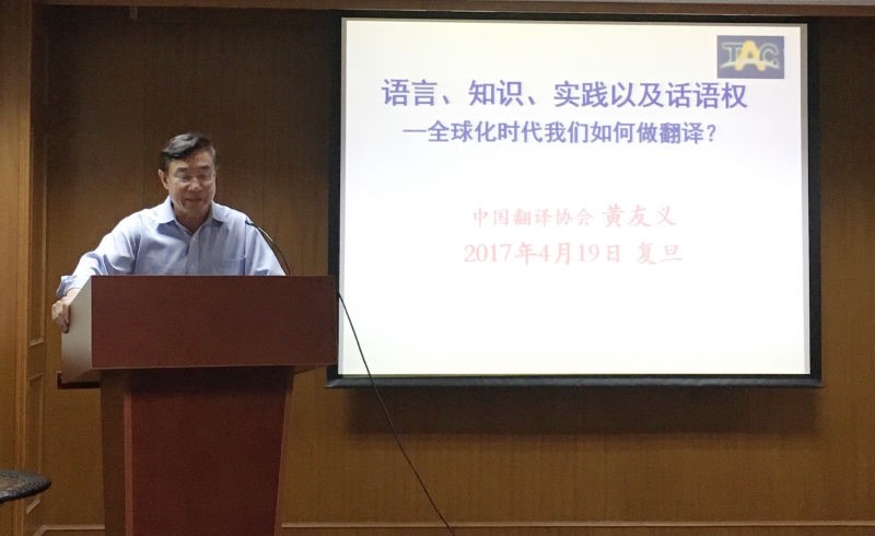 2017年4月19日下午13:30- 16:00,中国外文局原副局长兼总编辑、中国翻译协会副会长兼秘书长、MTI教指委主任委员黄友义教授应邀做客威客电竞(vkgame),为竞技而生外文学院,为英文系、翻译系师生带来精彩讲座。讲座由副院长卢丽安教授主持。
