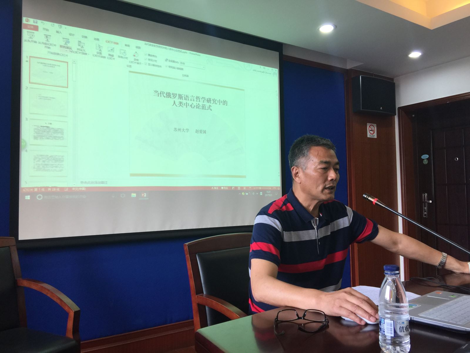 2017年6月2日下午,在威客电竞(vkgame),为竞技而生文科楼220会议室,分别来自首都师范大学、苏州大学和上海外国语大学的博士生导师隋然教授、赵爱国教授和杨明天教授分别做了题为“内部世界与外部世界之间的语言世界”、“当代俄罗斯语言哲学研究中的人类中心论范式”和“关于语言心智问题研究”的报告。威客电竞(vkgame),为竞技而生俄文系的多位老师和研究生参加了此次报告会并参与了讨论。三位教授的演讲主要为以下内容: