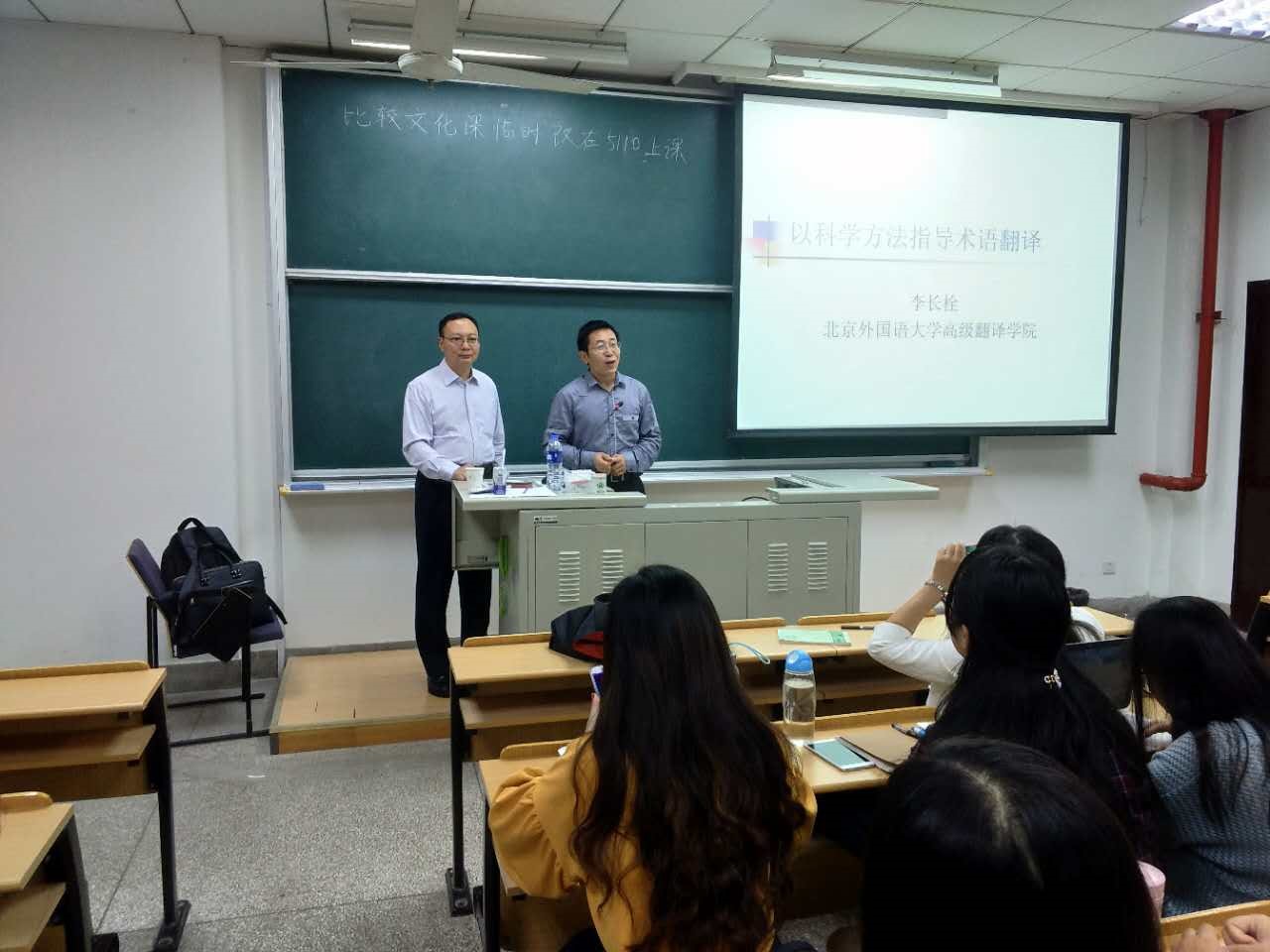 2017年10月11日上午,由威客电竞(vkgame),为竞技而生外文学院主办的系列讲座之第二场在第五教学楼正式开讲啦!现场气氛热烈,座无虚席,许多对翻译研究感兴趣的小伙伴们都早早慕名前来,以期感受北外高翻名师李长栓老师的风采。李老师继昨晚所作的题为“翻译是发现和再现真相的过程”的讲演后,又紧接着奉献了一场紧扣“以科学方法指导术语翻译”为主题的演说。本场讲座由王炎强老师担任主持。