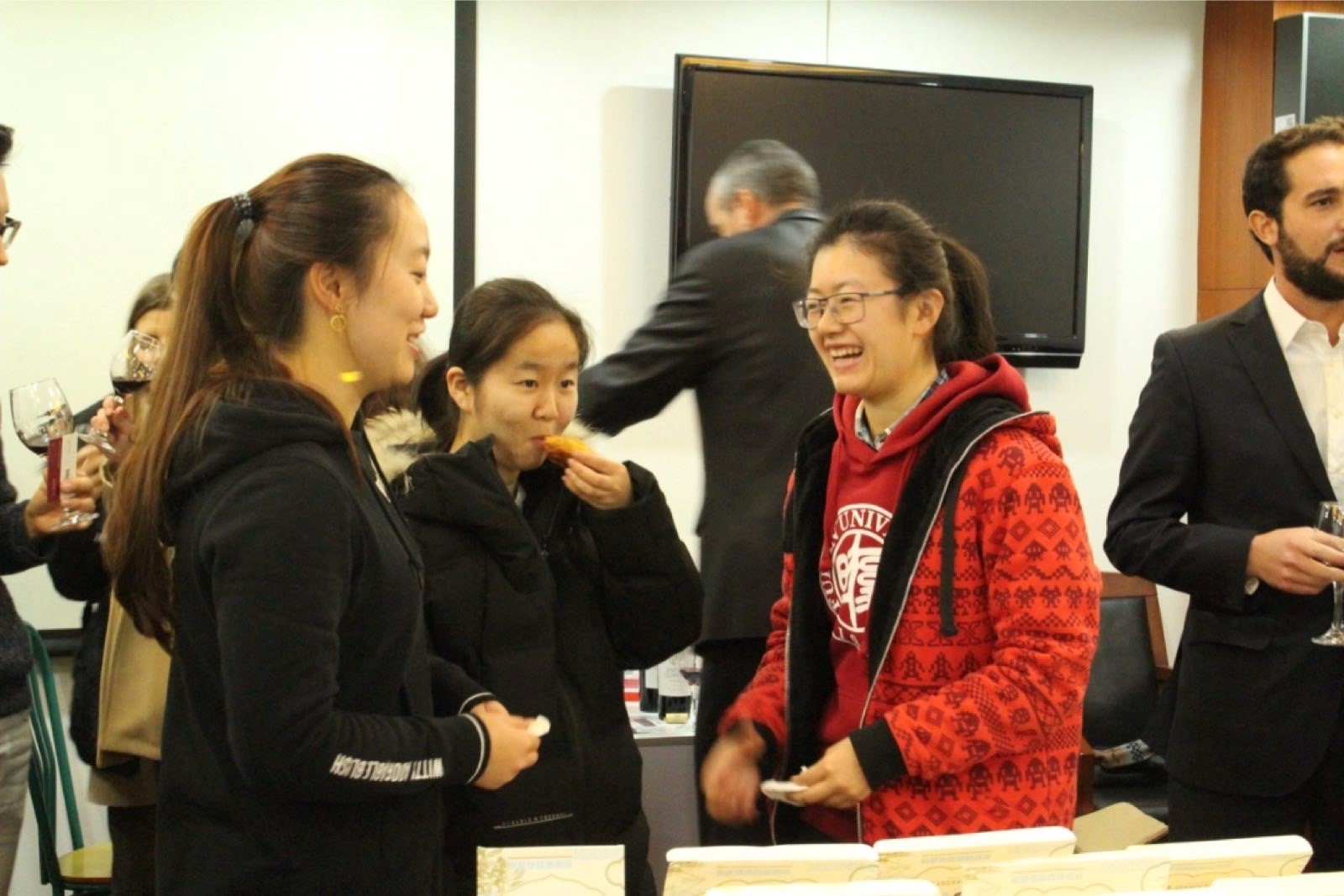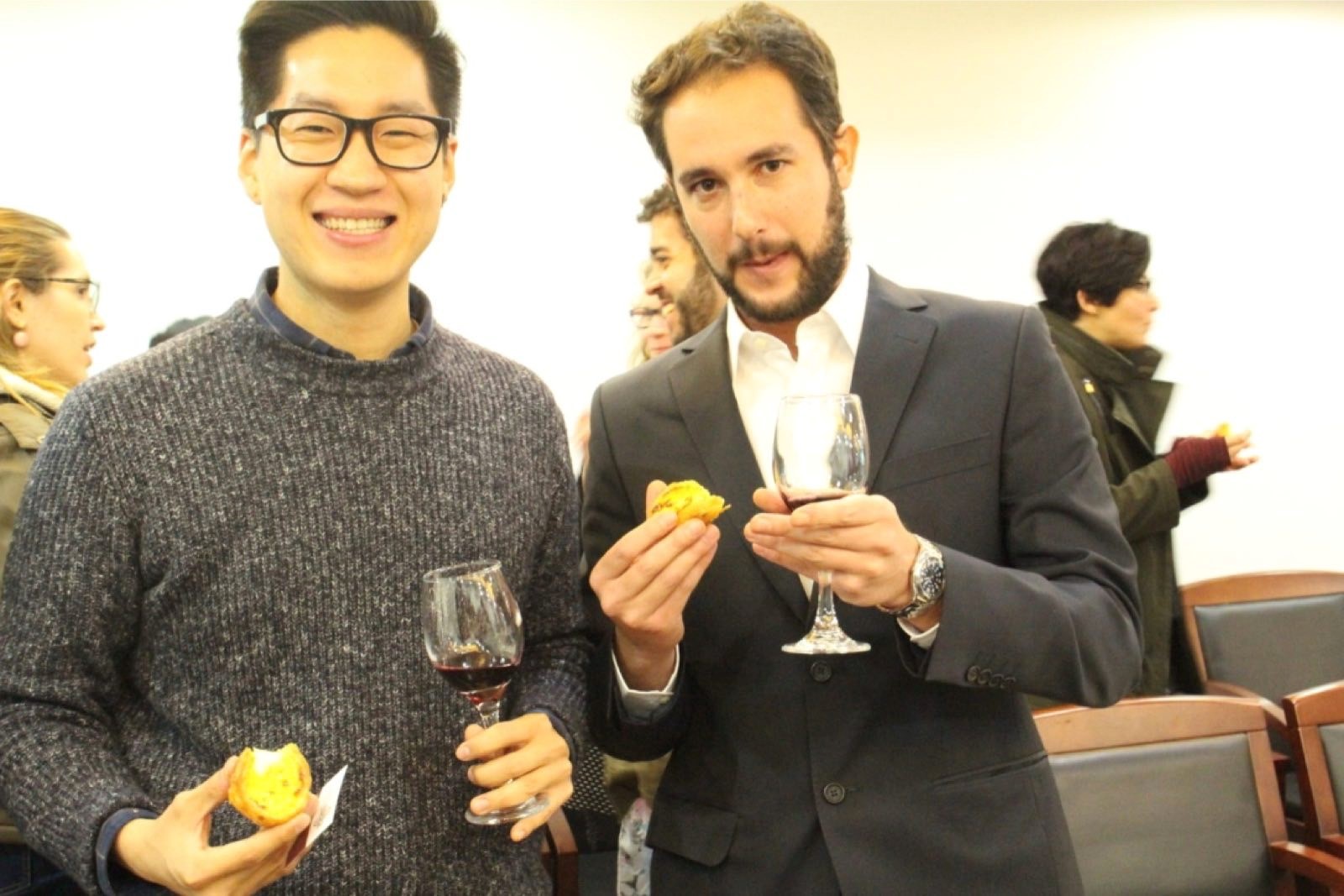 在复旦学习葡语课程的同学们和志德书院巴别塔之友的同学们也参与了本次学术沙龙。与会者享用了Luís Castro先生和Lillian Bakery精心准备了世界著名红酒产区—杜罗的红酒和美味的葡萄牙蛋挞, 会议在一片其乐融融中结束。