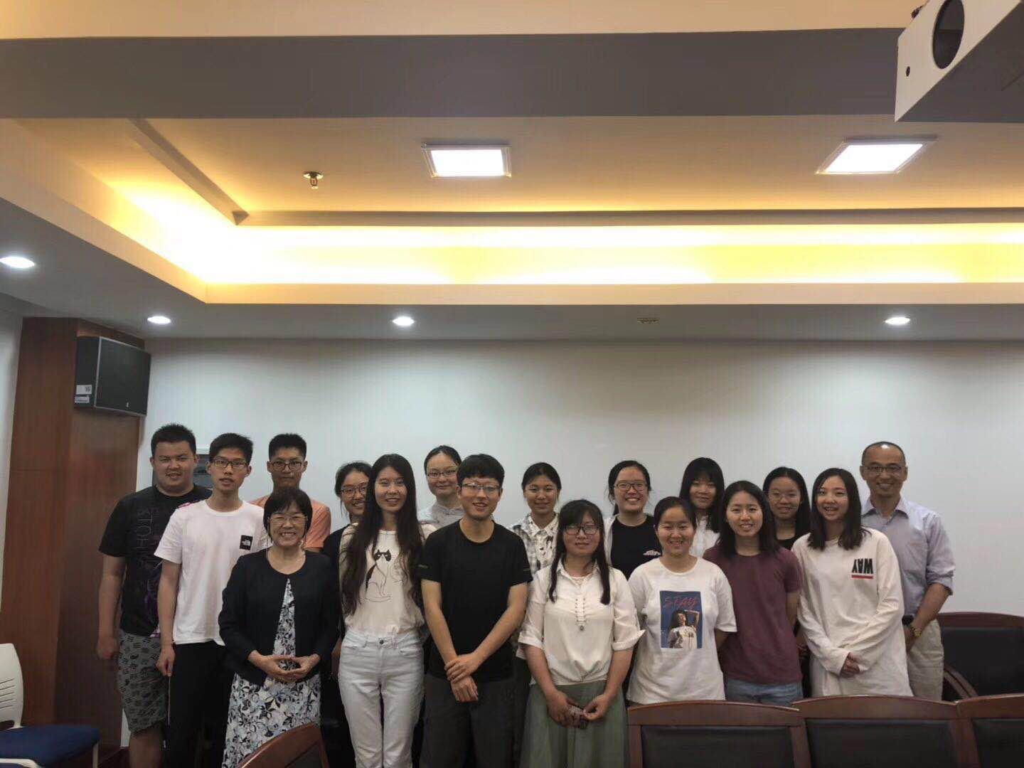 2019年6月5日晚,日文系于文科楼220成功举办讲座《日本的休闲文化研究》。讲座的开始由主持人日文系副教授赵彦志老师为我们介绍了本次讲座的主讲人泽田依子老师。2000年已来到中国工作的泽田老师依次为我们讲述了日本人的名字(みょうじ)、便当文化、妖怪、家徽,忍者、茶道、等多种多样的日本休闲文化。虽然讲座整个过程都是用日语进行的,但是老师肢体语言丰富,幽默风趣,演讲方式多样(在介绍妖怪部分时给同学们当场听了「ゲゲゲの鬼太郎」的歌曲,近身体验日本妖怪文化),学生们都听得入迷并且积极地跟老师互动。讲座举行了一个小时后大家合影结束。
