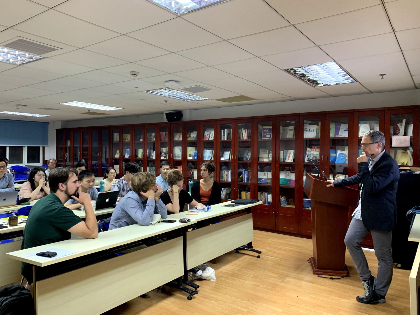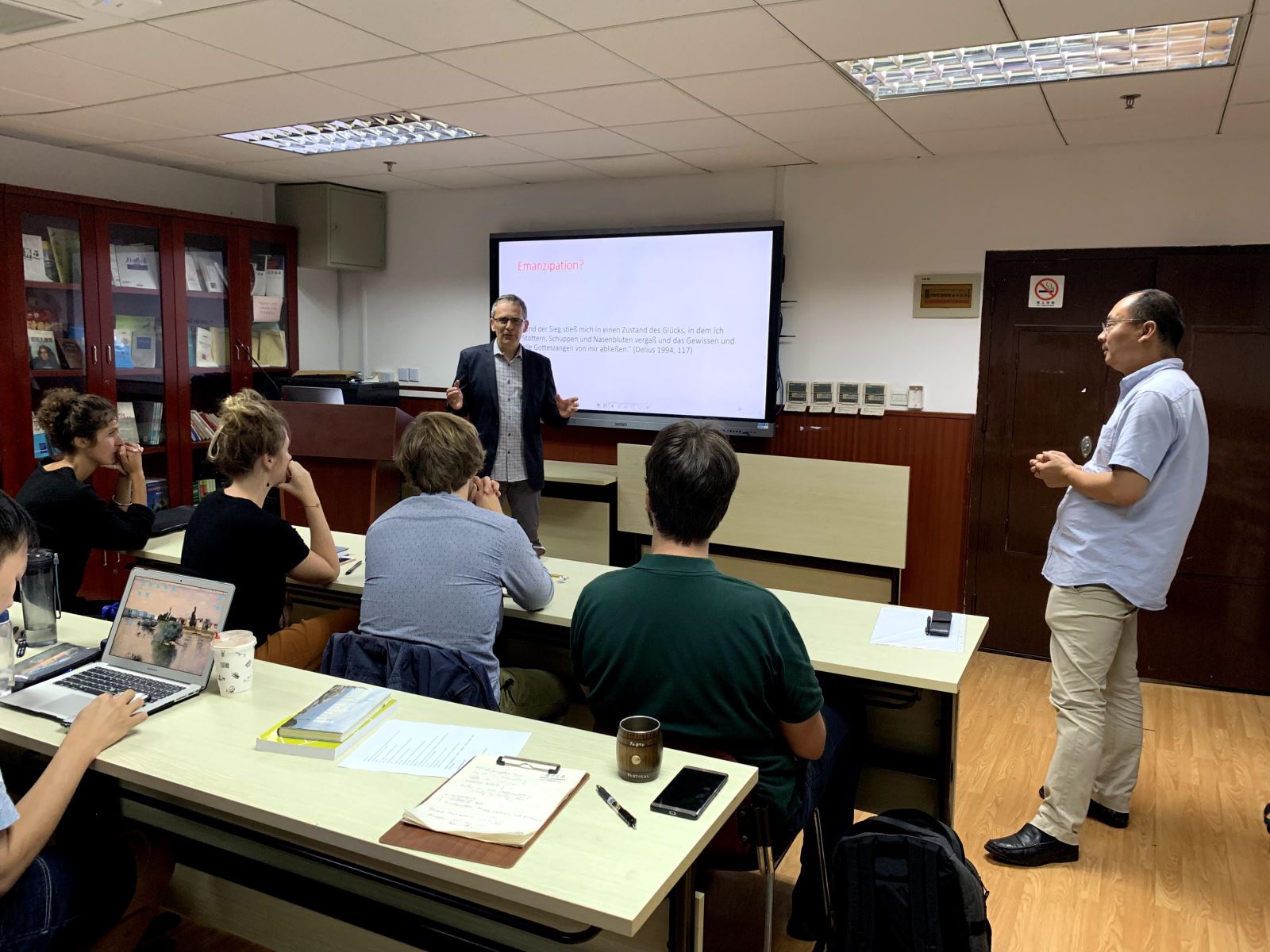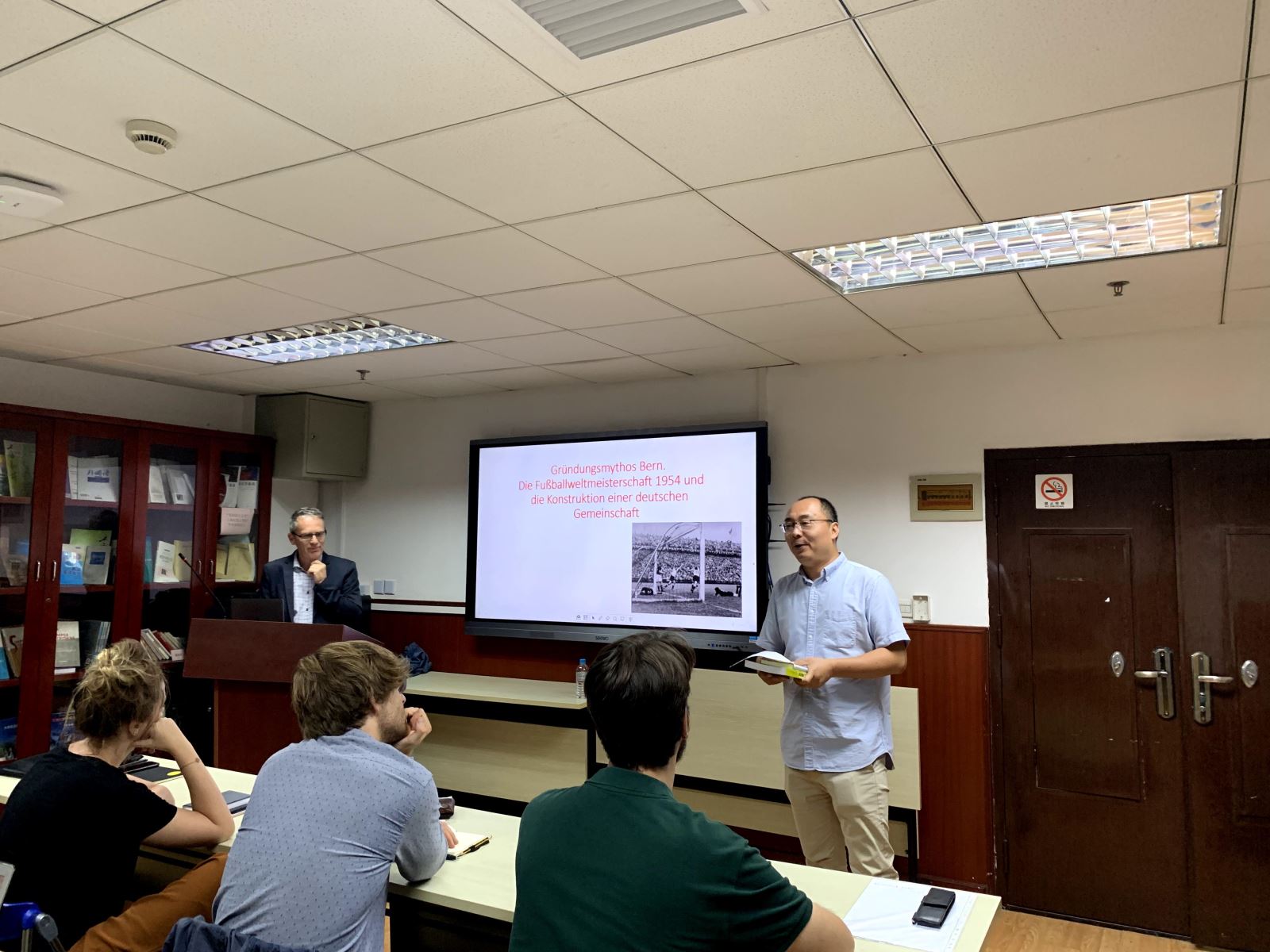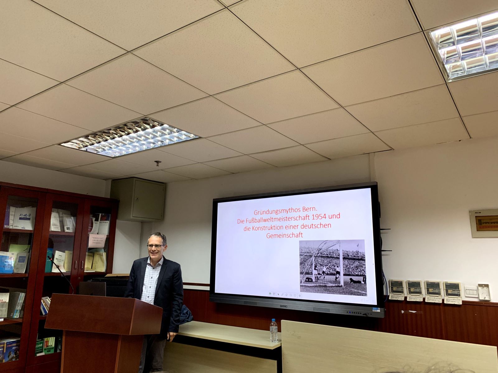 2019年9月20日,科隆大学德语文学系教授、知名作家Christof Hamann应邀来到威客电竞(vkgame),为竞技而生,在文科楼424举行了主题为“‘伯尔尼奇迹’与德国社会共同体的建构”的讲座。本次讲座由德文系副教授刘炜主持,吸引了众多德文系师生前来参加。