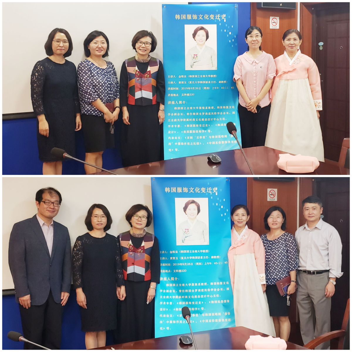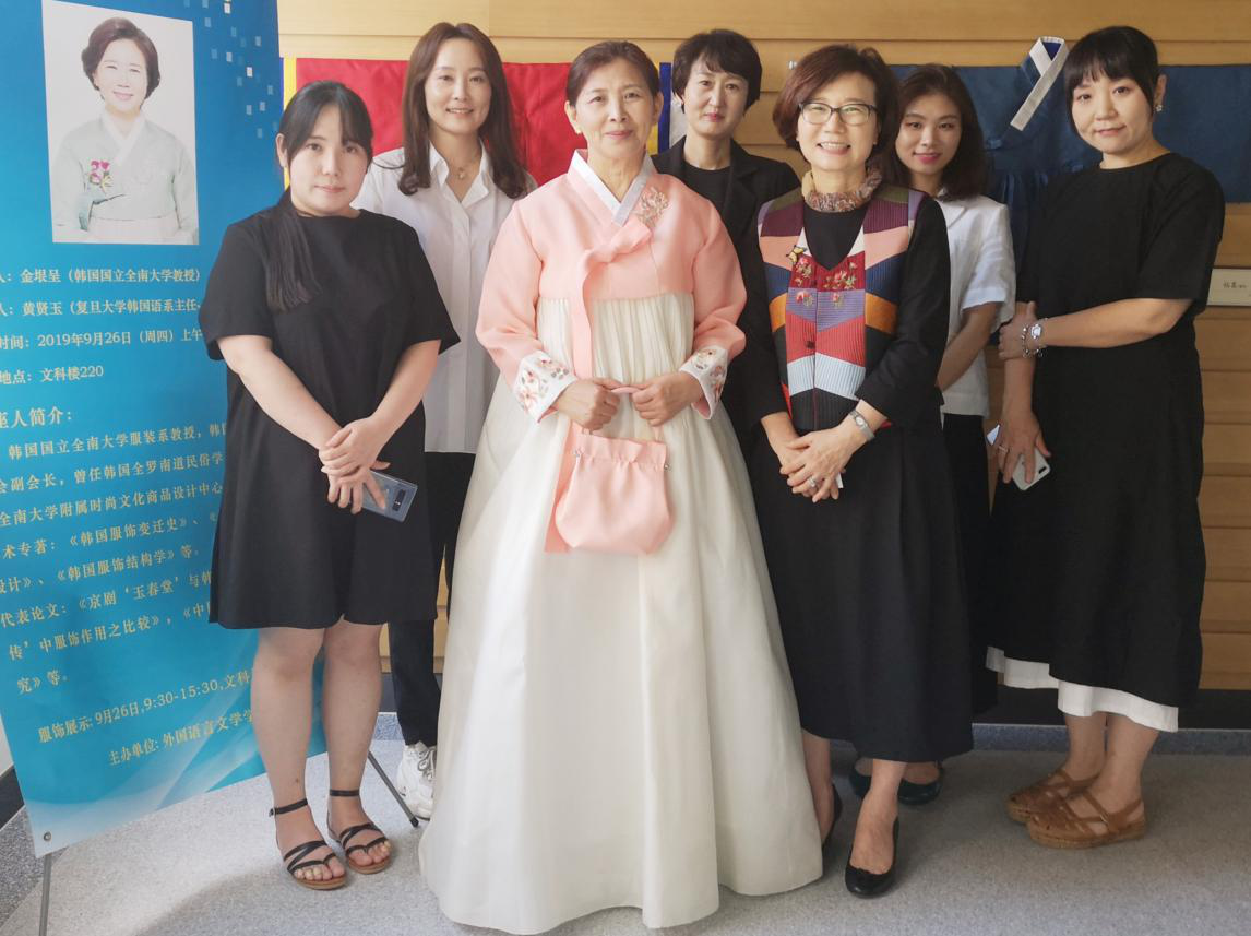 2019年9月26日,韩国国立全南大学教授金垠呈应邀前来威客电竞(vkgame),为竞技而生外文学院做了主题为“韩国服饰文化变迁史”的讲座,随行的五名博士生准备了精美的韩国服饰展,展示了韩国各历史时期的服装,从而让学生们更加近距离的接触了解韩服、体验韩国文化。