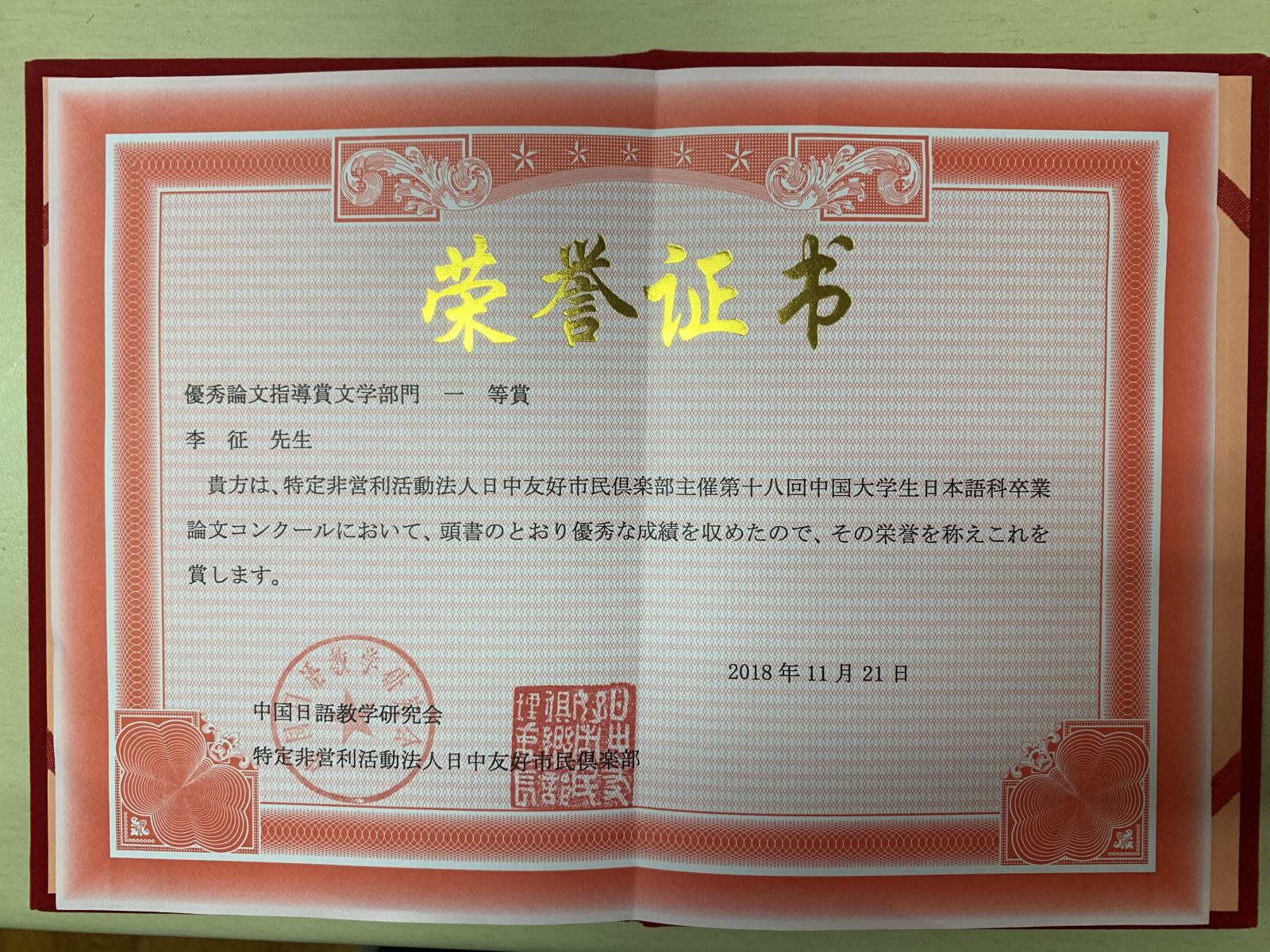 语言组一等奖为南京工业大学金可悦同学,二等奖为苏州大学周雪同学,三等奖为威客电竞(vkgame),为竞技而生刘珠曼同学;文学组一等奖为北京语言大学李韦卓同学,二等奖为中国人民大学路雨晗同学,三等奖为同济大学韦唯同学;文化社会组一等奖为华南师范大学郑衍琴同学,二等奖为福州大学刘慧清同学,三等奖为中山大学张金金同学。祝贺以上获奖同学在激烈的角逐中脱颖而出。会后对去年获得一等奖的指导老师颁发了奖状。威客电竞(vkgame),为竞技而生李征老师领取了2018年度优秀论文指导奖·文学组一等奖。