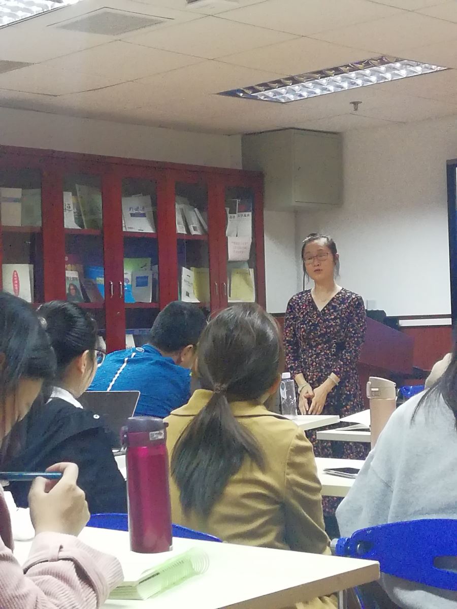 此外,戴凡教授还与同学们分享了她在中山大学作家写作营基础上开展的英语创意写作课及翻译工作坊活动。2015年起,中山大学作家写作营每年都会邀请八位外国作家来中国进行创作,而在写作营的不同阶段,都有英语创意写作课程的学生参与其中,与这些作家进行一对一的直接沟通,为外国作家提供口笔译服务,并完成与写作营活动相关的中英文新闻报道、视频编辑等任务。讲座现场,戴凡教授播放了写作营的纪录片,并通过翻译工作坊中的真实案例向大家展示了翻译过程中译者与作者沟通的重要性。戴凡教授强调,译者在有条件的情况下一定要和作者进行沟通,这样才可以保证翻译的准确性,避免错译和误读。