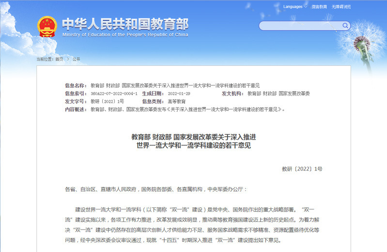 经中央深改委会议审议通过,《关于深入推进世界一流大学和一流学科建设的若干意见》近日由教育部、财政部、国家发展改革委印发。经国务院批准,三部委公布第二轮“双一流”建设高校及建设学科名单。我校哲学、应用经济学、政治学、马克思主义理论、中国语言文学、外国语言文学、中国史、数学、物理学、化学、生物学、生态学、材料科学与工程、环境科学与工程、基础医学、临床医学、公共卫生与预防医学、中西医结合、药学、集成电路科学与工程等学科入选本轮“双一流”建设学科。与首轮建设相比,我校入选“双一流”建设学科数从17个增加到20个我院外国语言文学成功入选一流学科建设名单。