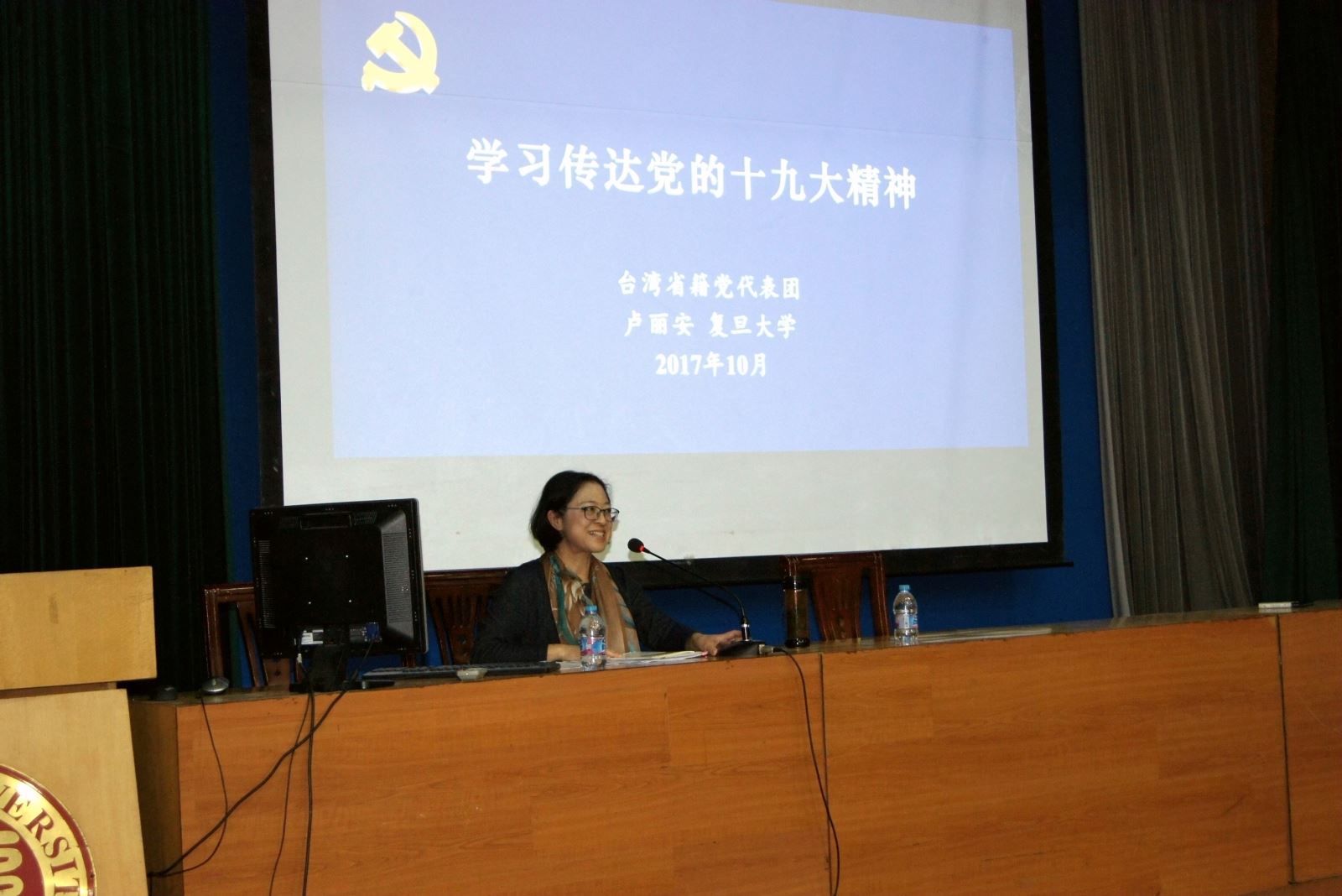 首先,卢丽安同志向大家介绍了党的十九大会议概况、大会主题和主要议程。接着,通过梳理介绍党的十九大报告的主要内容脉络,《中国共产党章程(修正案)》中的主要修改内容,十八届中央纪律检查委员会工作报告的主要内容,全面而突出重点地向师生党员传达了党的十九大的主要精神。