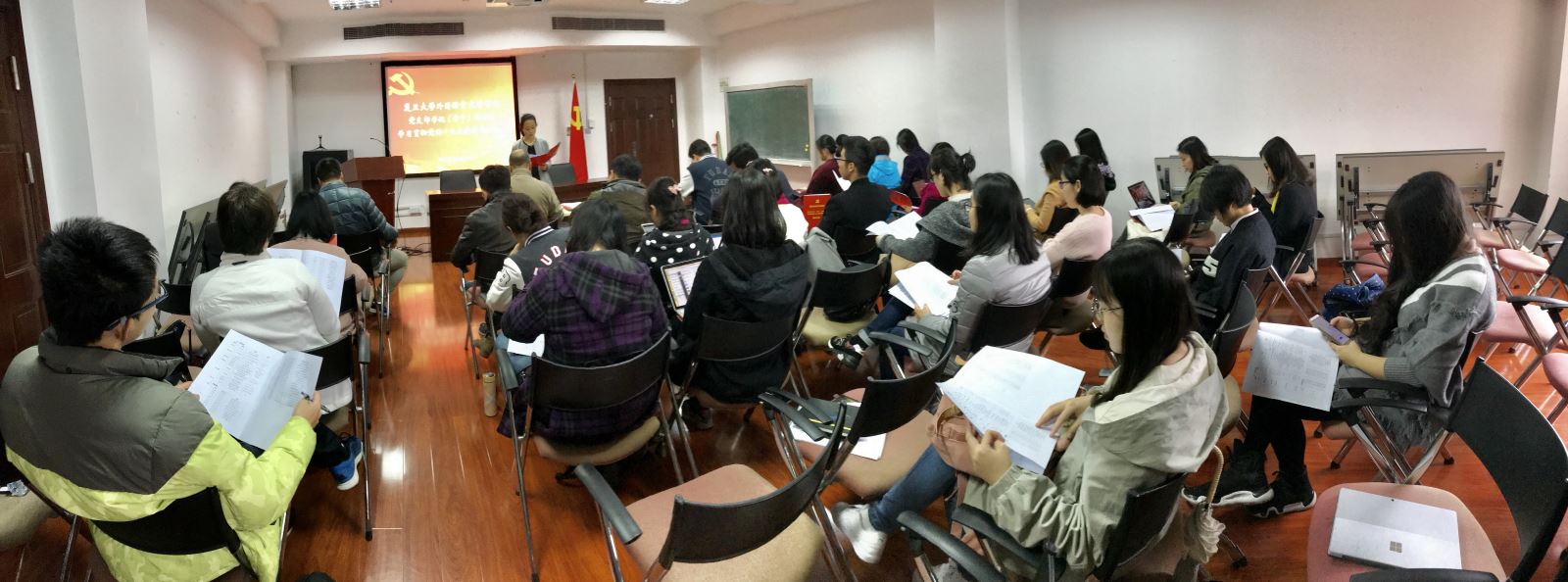 分党委副书记赵昕首先介绍培训安排。本次培训以学习宣传贯彻党的十九大精神为指导,紧密结合学校专题培训和学院党建工作实践,按照集中学习、集体实践、分组活动三大板块展开,以期提升队伍素质能力、促进学院党建工作、推进学院事业发展。