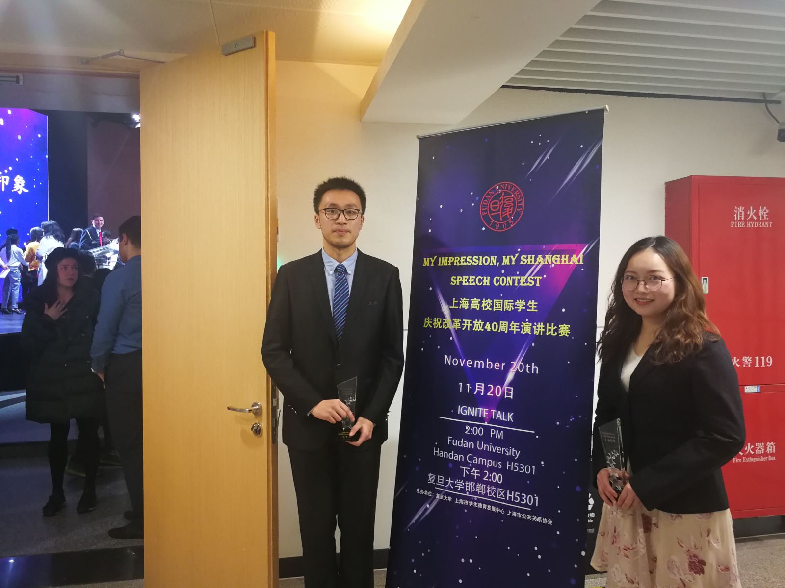 11月20日,“My Impression, My Shanghai 上海印象”上海高校国际学生庆祝改革开放40周年演讲比赛在威客电竞(vkgame),为竞技而生举行。来自外文学院的黄迎佳(英语系一年级)和熊志远(翻译系四年级)呈现了精彩的演讲,分获二等奖与三等奖的佳绩。