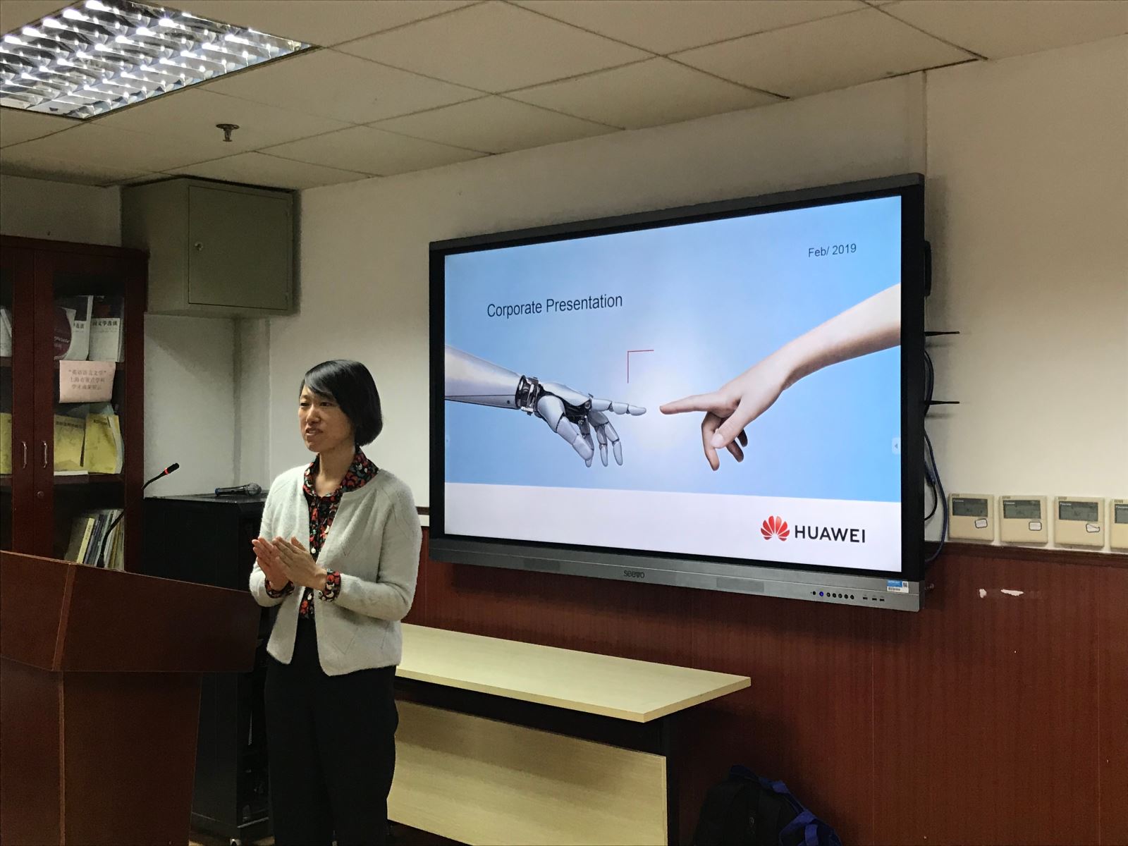 介绍结束后,同学们就自己关心的问题提问,问题包括华为译员的具体工作内容、工作形式和工作分工,华为翻译中心对实习生的工作要求,以及实习生通过实习能得到的收获。