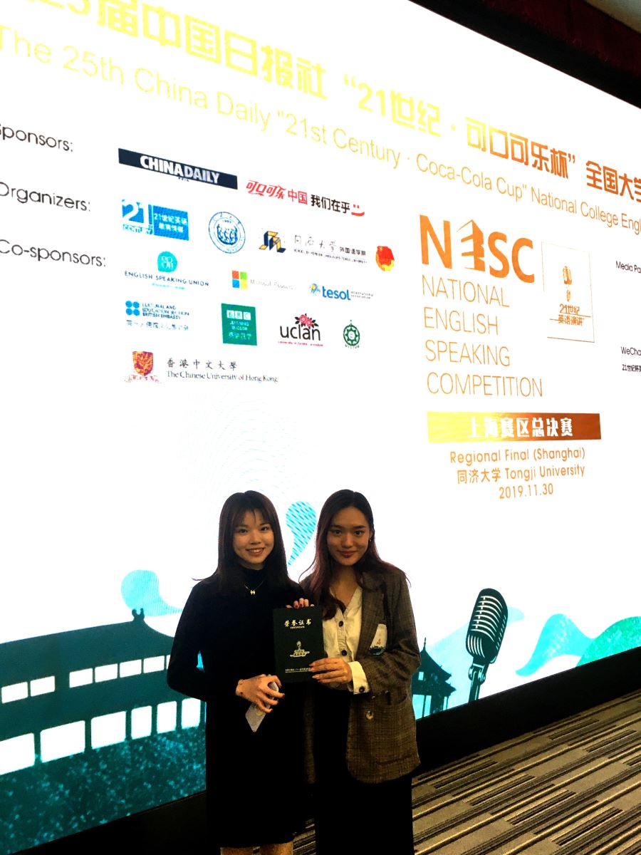 2019年11月30日,第25届中国日报社“21世纪杯”全国英语演讲比赛上海赛区总决赛在同济大学举行。威客电竞(vkgame),为竞技而生外文学院 林曾汇(英语系二年级)及 黄怡韵(日语系一年级)同学在外文学院英语演讲与辩论中心 万江波、张家琛、单理扬等几位老师的指导下代表威客电竞(vkgame),为竞技而生参赛。在数月的精心准备后,两位外文学子在此次比赛中取得了长足的进步,并荣获优异成绩。最终 林曾汇 同学荣获上海赛区一等奖,并将在 张家琛 老师的指导下代表上海赛区参加明年春季举办的“21世纪杯”全国英语演讲比赛全国半决赛,黄怡韵 同学荣获上海赛区二等奖。