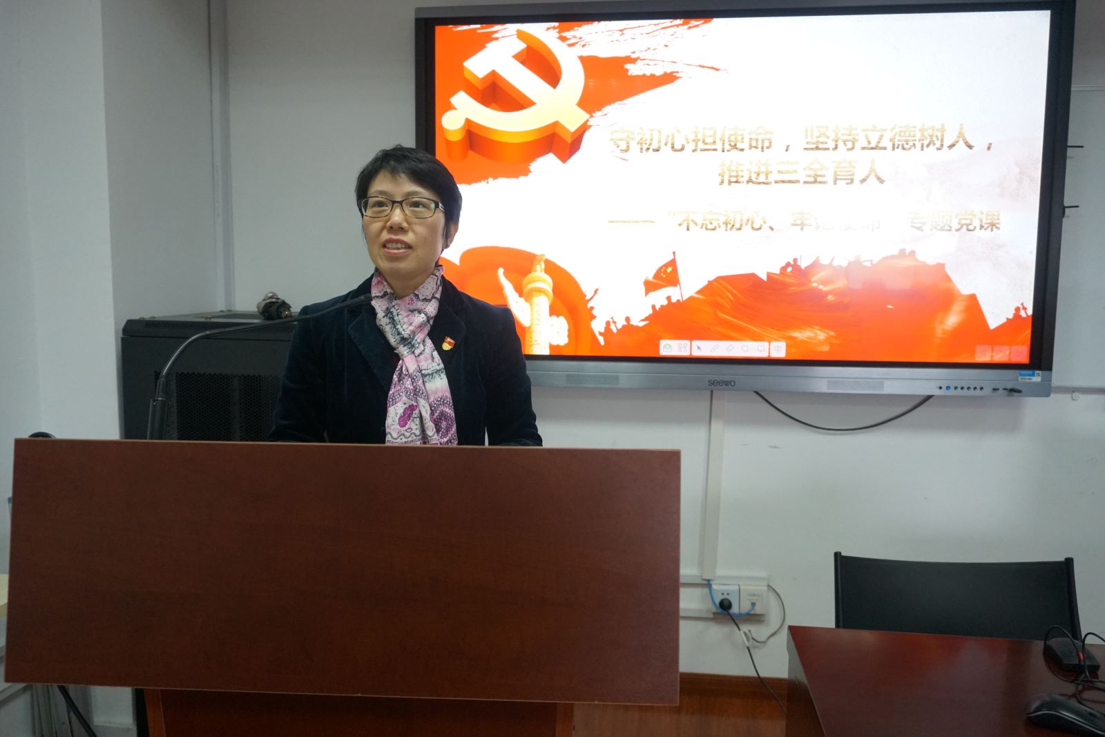 此外,根据学校要求和学院部署,11月26日,副院长郑咏滟、朱建新分别给英文支部党员讲了《深入推进研究生三全育人》和《结合不忘初心,牢记使命,将三全育人工作落到实处》专题党课。11月27日,党委副书记赵昕给新生班党章学习小组全体学员讲了《认真学习党章,争取积极加入中国共产党》专题党课。