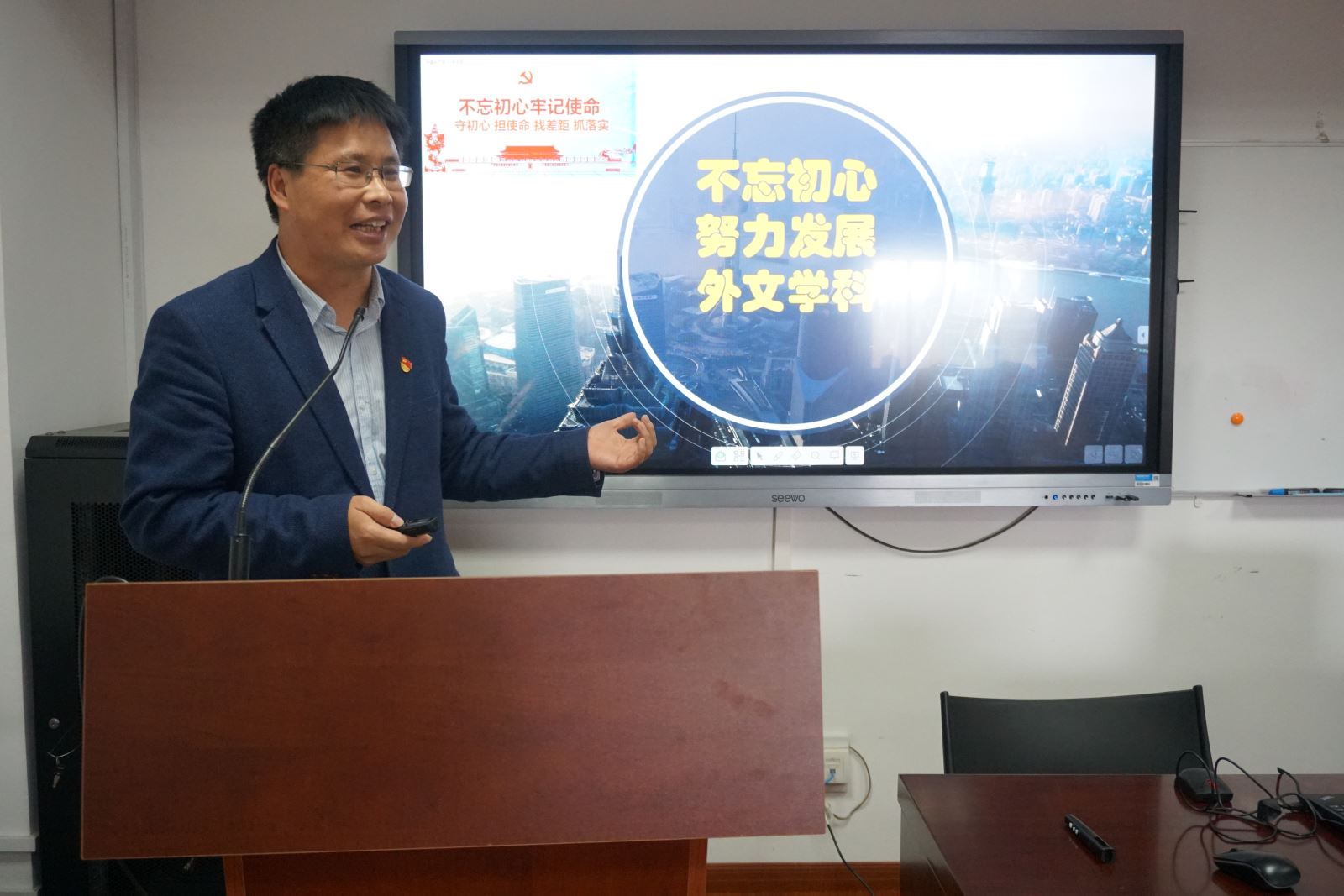 11月22日下午,外文学院举行“不忘初心、牢记使命”主题教育专题党课,党委书记罗英华和院长高永伟为全院师生党员代表讲党课。