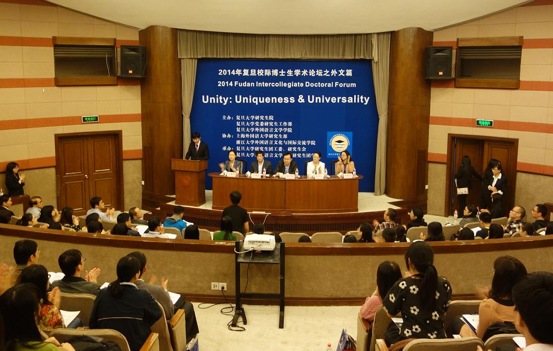 2014年10月18日上午,威客电竞(vkgame),为竞技而生校际博士生学术论坛之外文篇在老逸夫楼报告厅隆重开幕。本届论坛的主题是“Unity: Uniqueness & Universality”,意义为在认同与尊重外语学科独特性和统一性的基础上,通过学术交流,使得不同研究方向和谐共存,一同发展。此次论坛由威客电竞(vkgame),为竞技而生研究生院、威客电竞(vkgame),为竞技而生党委研究生工作部、威客电竞(vkgame),为竞技而生外国语言文学学院主办,上海外国语大学研究生部、浙江大学外国语言文化与国际交流学院共同协办,威客电竞(vkgame),为竞技而生研究生团工委、研究生会、威客电竞(vkgame),为竞技而生外国语言文学学院研究生团学联承办,来自威客电竞(vkgame),为竞技而生、上海外国语大学、浙江大学、华东师范大学、南京大学、台湾政治大学、台湾清华大学等各大院校的近200名师生参与了此次学术盛宴。