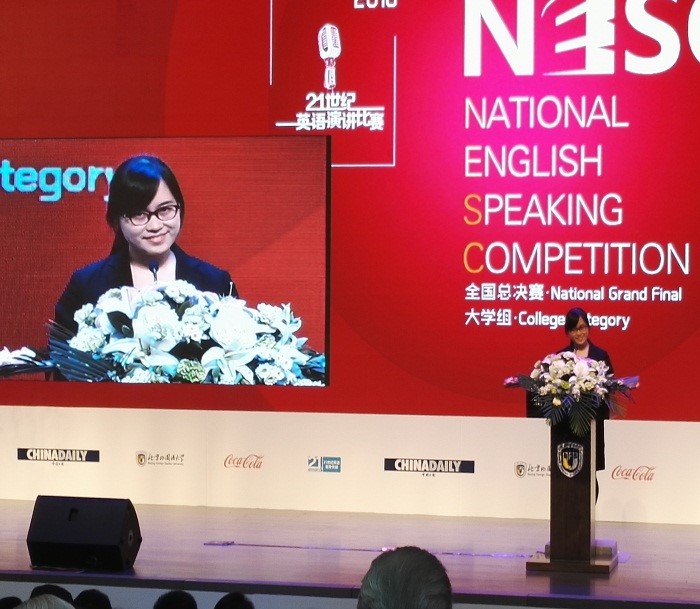 大学英语教学部指导选派的 刘 涟 同学(指导老师 万江波)在3月17日-20日北京举行的21世纪杯全国英语演讲比赛总决赛中,一路过关斩将,最终荣获一等奖。