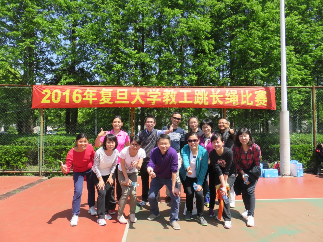 2016年4月19日中午,外文学院工会组织参加了学校跳绳比赛。我院代表队顽强拼搏,在三分钟内成功跳绳177次,基本保持了去年的比赛记录。