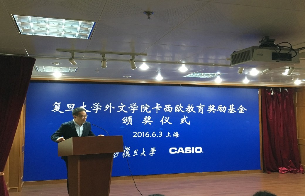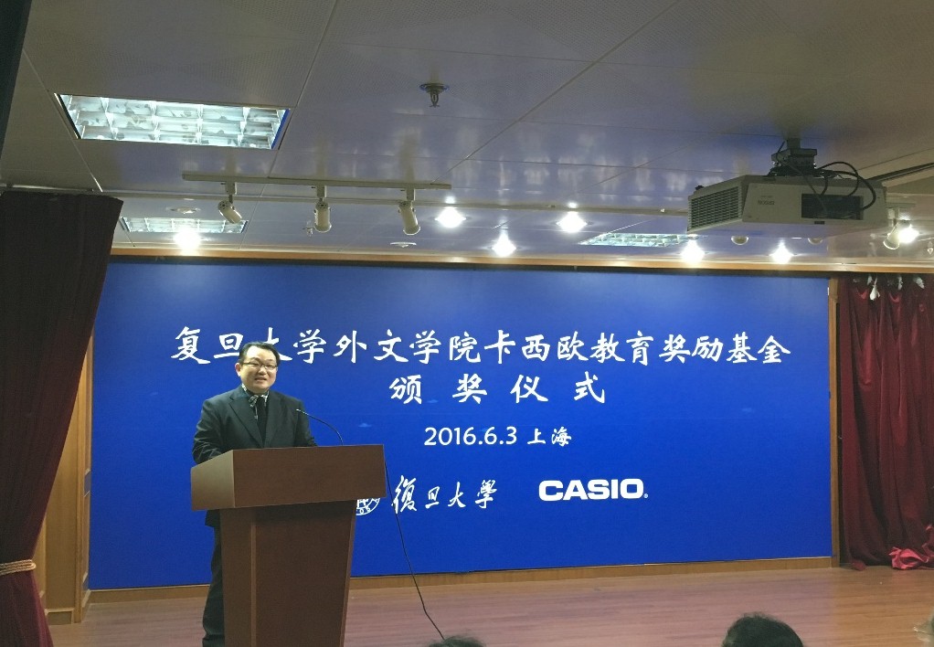 2016年6月3日下午,外文学院在文科楼209室举行2015年度卡西欧奖教学金颁奖仪式。出席仪式的有卡西欧(中国)贸易有限公司副总经理岩丸阳一、电子教育营业部副部长路银霞、营业部课长俞科凯,外文学院院长曲卫国、党委书记李倩、副院长卢丽安、党委副书记赵昕,以及外文学院获奖师生。颁奖仪式由外文学院副院长卢丽安主持。