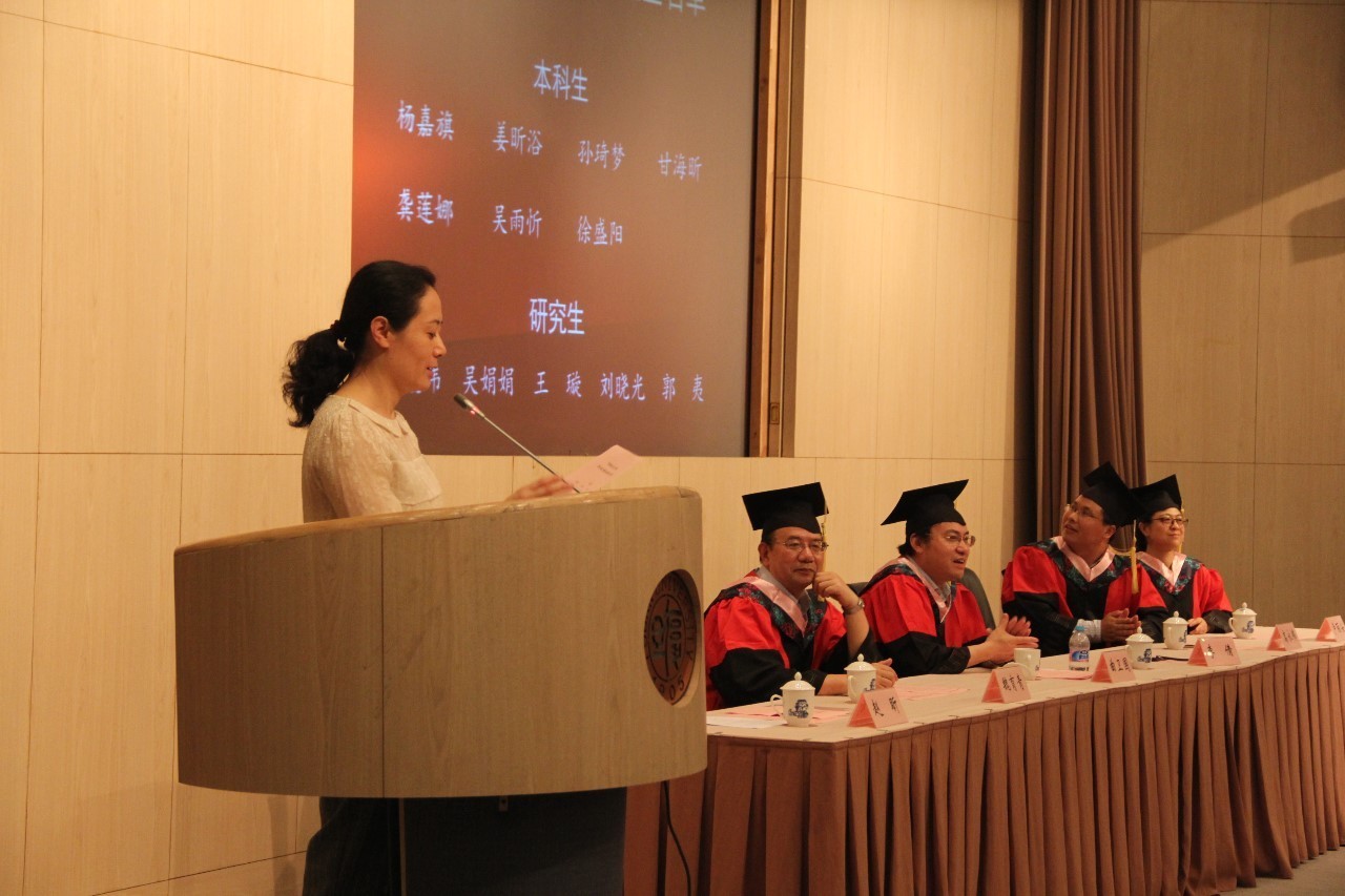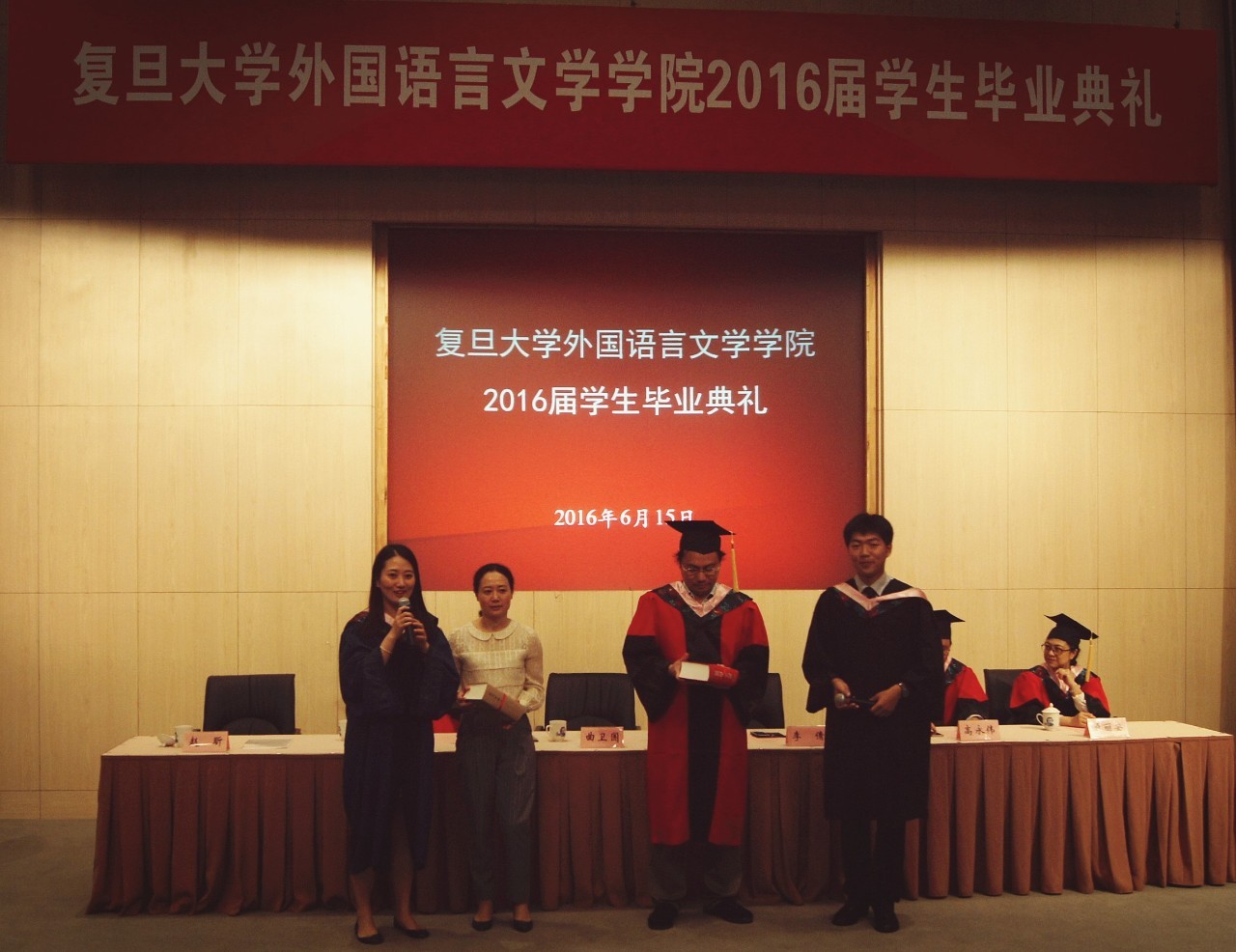 随后,学院党委书记李倩老师宣读学院“上海市优秀毕业生”名单。优秀本科毕业生代表、2016届英语系本科生杨嘉旗,优秀研究生毕业生代表、2016届英语语言文学硕士侯凌玮先后发言。他们表达了对父母和师长的感谢,承诺将带着外院赋予他们的学识和精神,在不同的方向上努力走好属于自己的每一步,以实际行动回报学院、学校、社会和国家的培养。