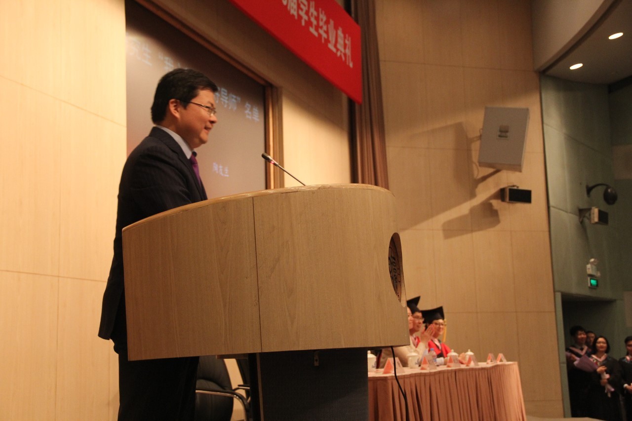 最后,在愉快而热烈的气氛中,外文学院院长曲卫国老师深情寄语本届毕业生。曲院长希望全体毕业生能自己定义成功和幸福,在未来不断进取,发扬外文学院的精神,在人生的新起点扬帆远航。
