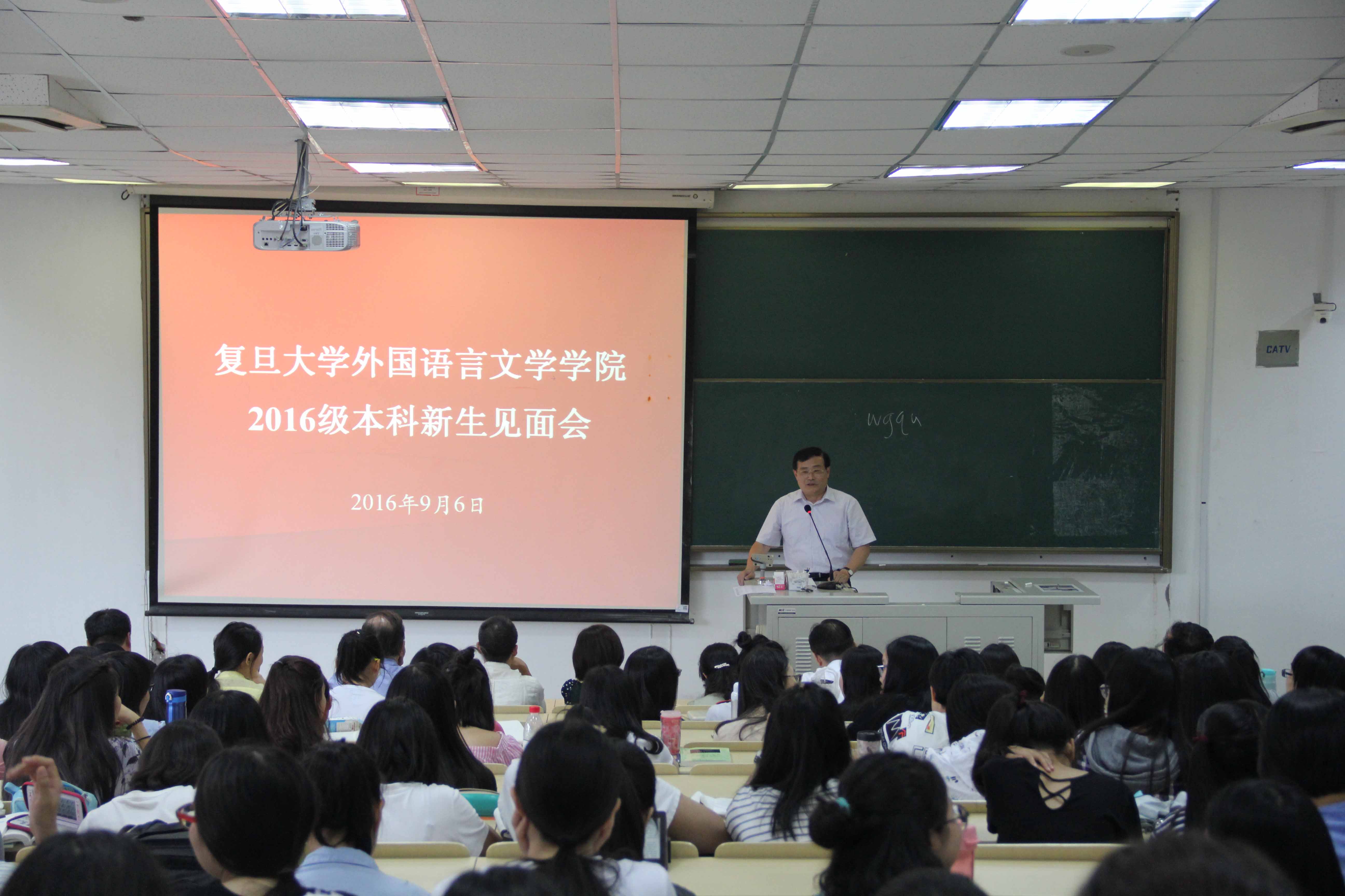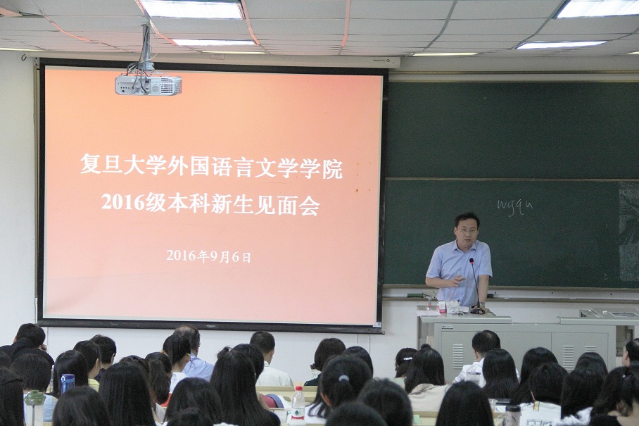 9月6日下午,外文学院举行2016级本科新生见面会,院长曲卫国、党委书记李倩、副院长高永伟、党委副书记赵昕等老师出席。曲卫国院长首先真切地表达了对同学们的欢迎,阐述了复旦和外文学院共同的教育目标,鼓励大家多与老师交流,勤于思考,培养起良好的自主学习能力,并在大学生活中能够主动地思考学业发展与人生规划,最后,他用“Whoever learns a foreign language learns a new world”告诫大家:学习外语是为了看到更多样化的世界,不要仅仅停留在语言学习的层面上,要充分利用威客电竞(vkgame),为竞技而生提供的优秀资源与平台,注重培养多样化的能力。英文系孙建教授代表学院教师为新生寄语,他首先介绍了学院的发展历史和博雅传统,并结合自己在复旦求学经历,教导大家要谦卑包容、心怀诚信、善待他人,要珍惜复旦优良的学习环境,充分利用学校的资源,认真度过四年的大学时光。最后,他引用英国作家艾萨克·沃尔顿的小说《钓客清谈》结尾的一句话来结束新生寄语——“Study to be quiet”,希望大家戒骄戒躁,潜心学术。见面会结束后,各系还分别举行了新生座谈会。
