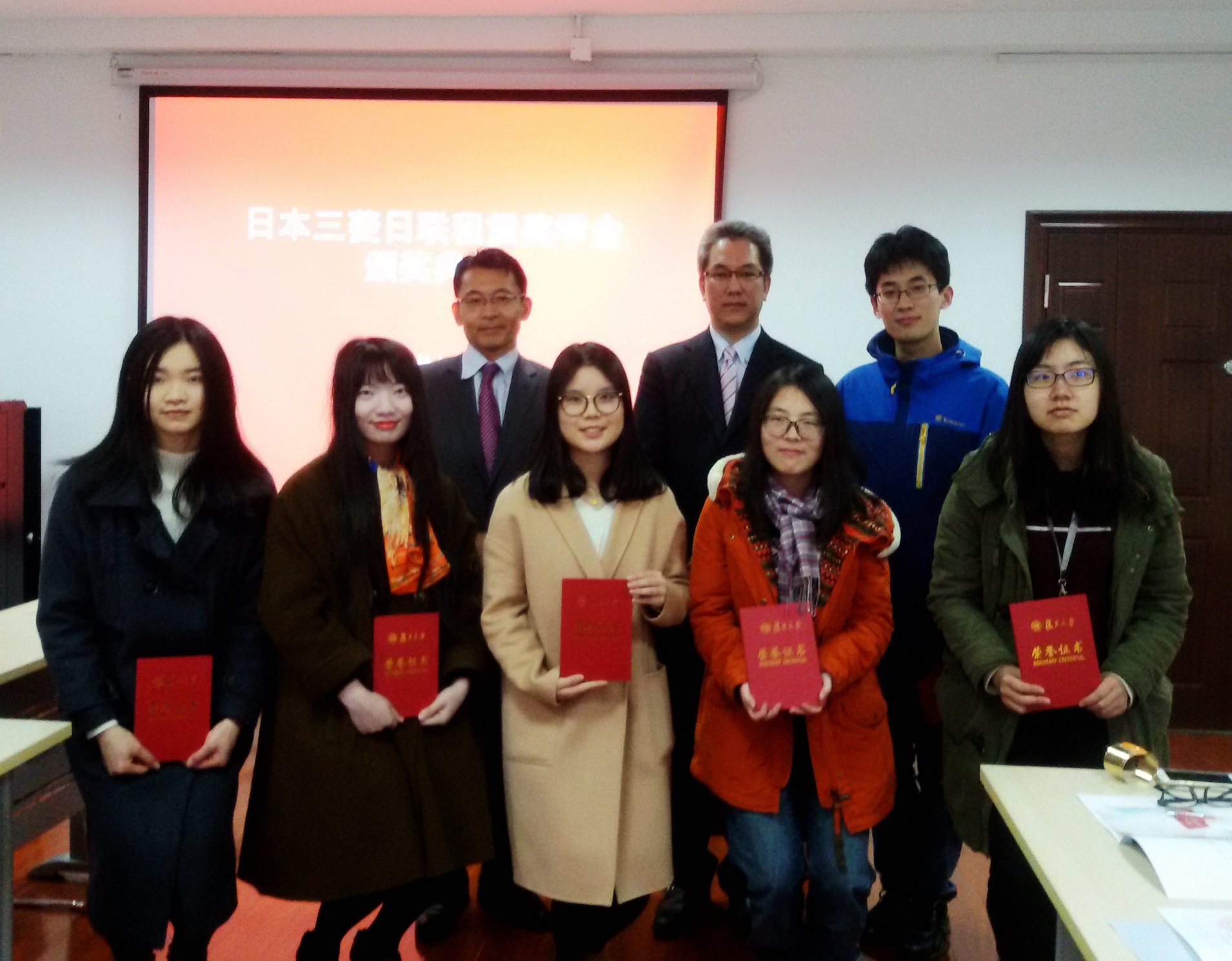 最后,中村圭吾先生、西村先生共同为获奖学生颁发了荣誉证书,表达了对获奖学生的祝贺,并与获奖同学合影留念。典礼结束后,设奖方还与获奖同学进行了座谈。