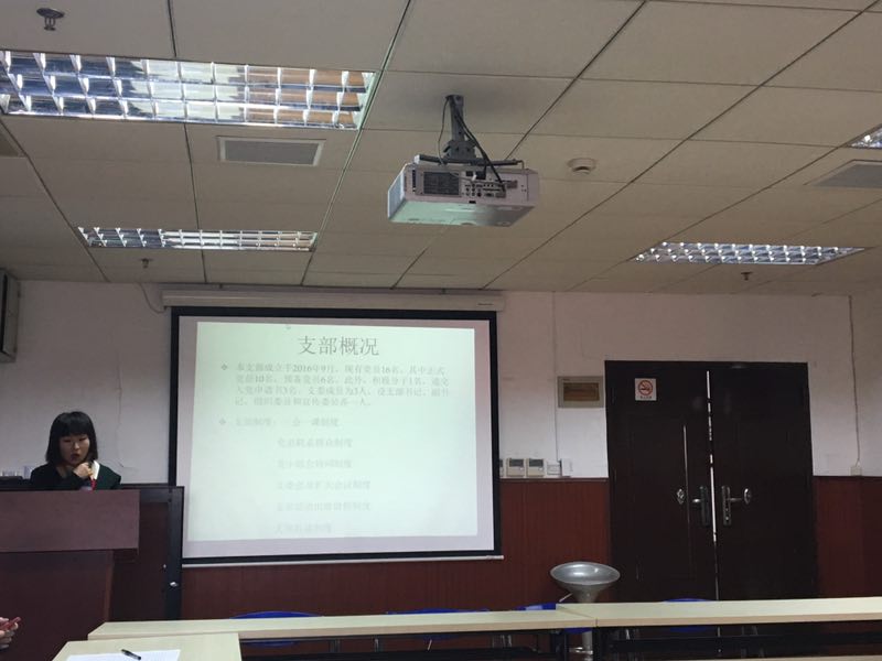 2016级硕士生党支部书记包慧怡对支部成立以来的建章立制、党员发展与支部活动进行了总结,与大家分享了打造理论学习型特色支部的设想。