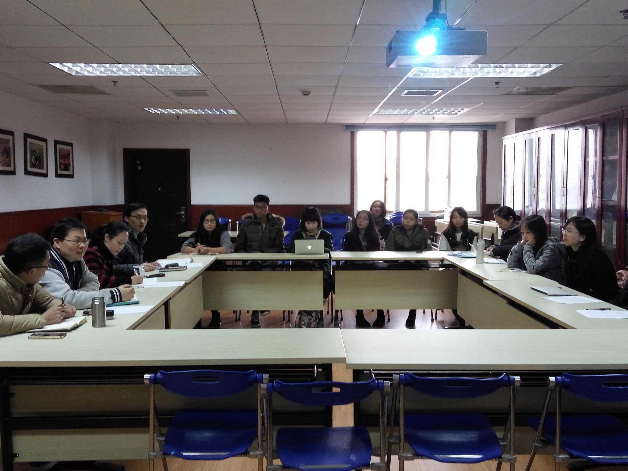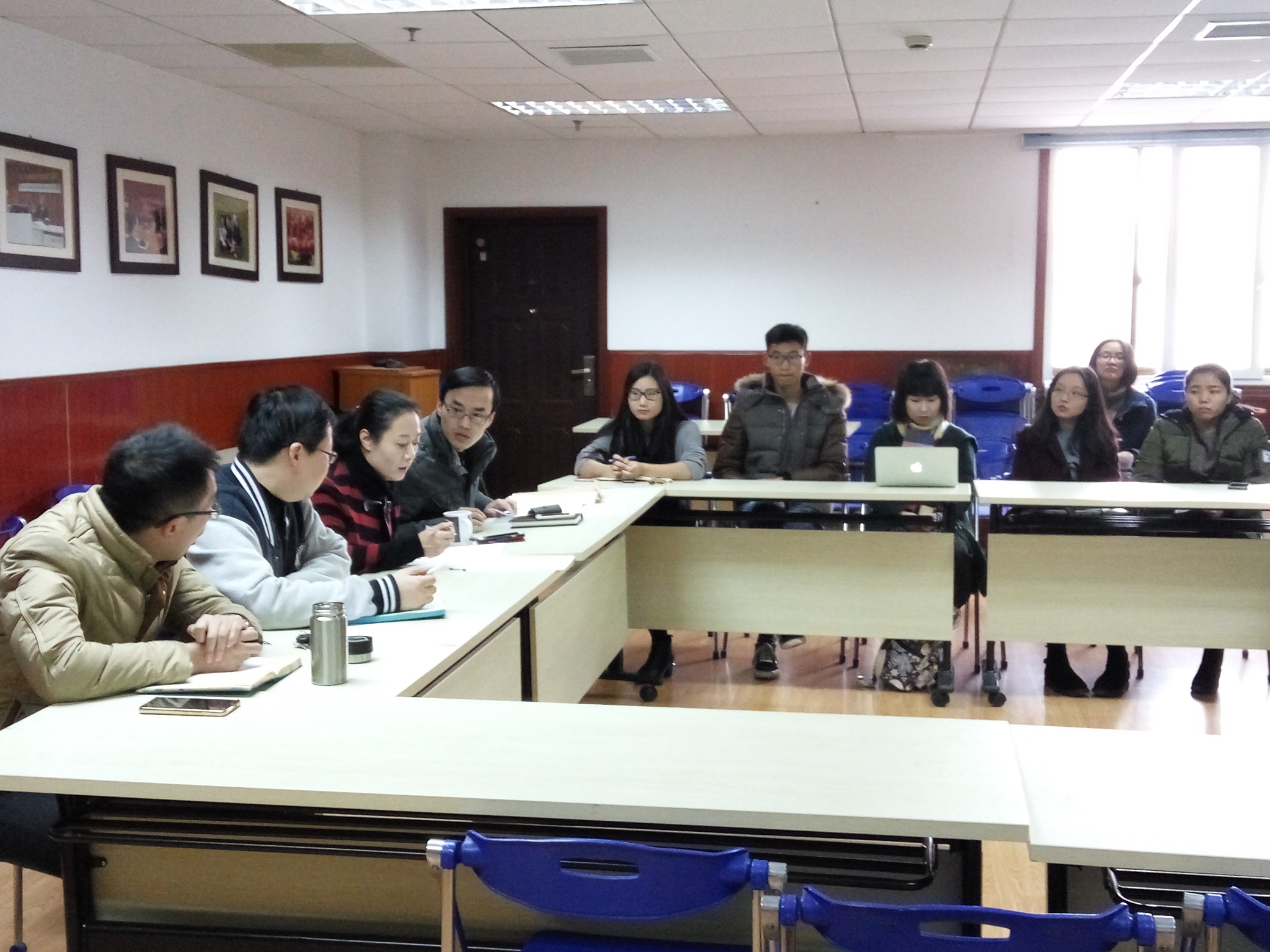 为深入推进“两学一做”学习教育,进一步学习贯彻全国高校思想政治工作会议精神,2016年12月30日中午,外文学院学生党总支在文科楼424会议室举行学生党支部书记年度述职会。外文学院党委书记李倩、副书记兼学生党总支书记赵昕,学生党总支副书记郑阳、王亚鹏,学生党总支委员汪蒙琪、袁晶、部分辅导员代表,各本科生、研究生党支部支部书记、支委和支部党员代表等参加述职会。