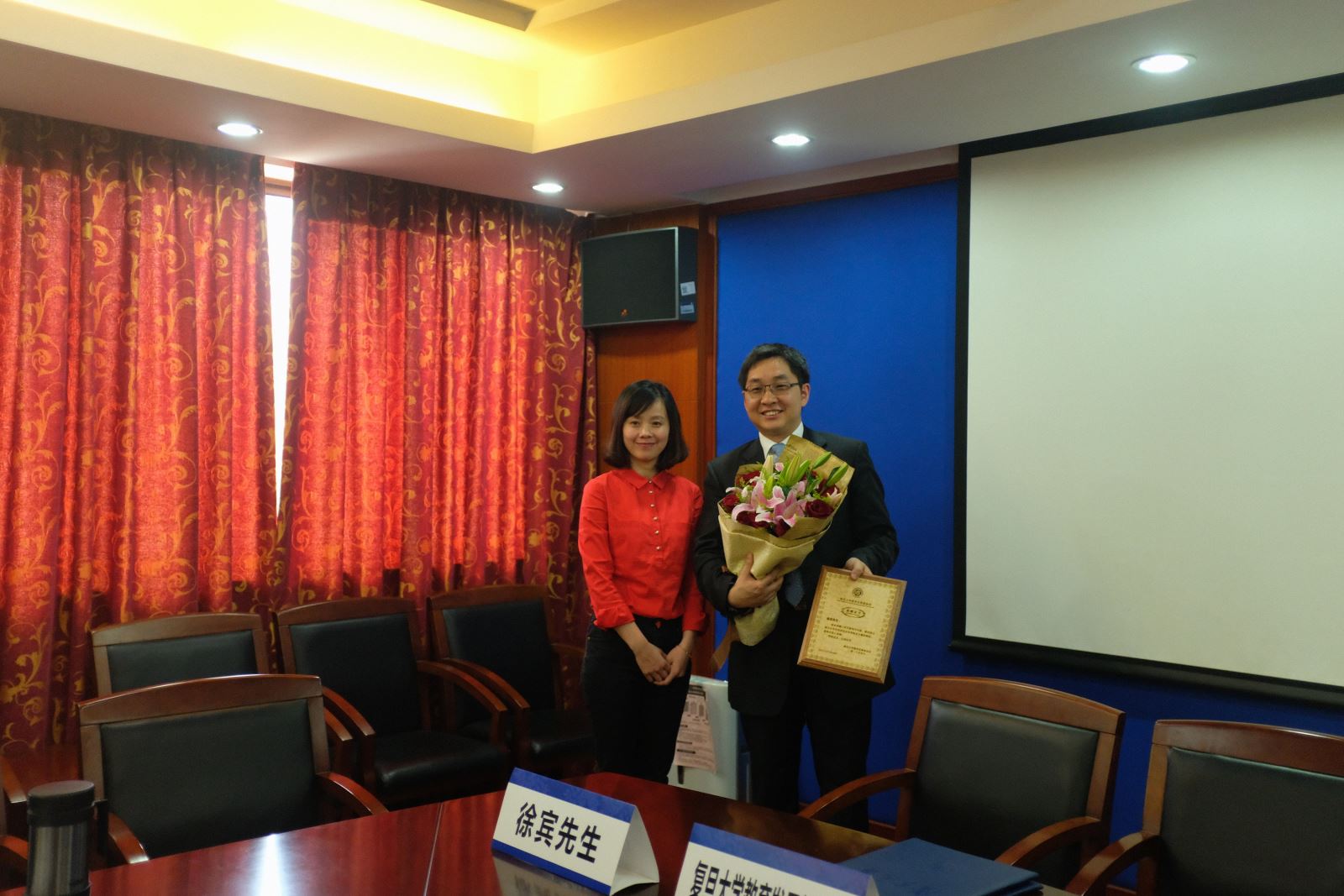 龙文佩教授家属和学院领导为获奖教师颁发了证书。