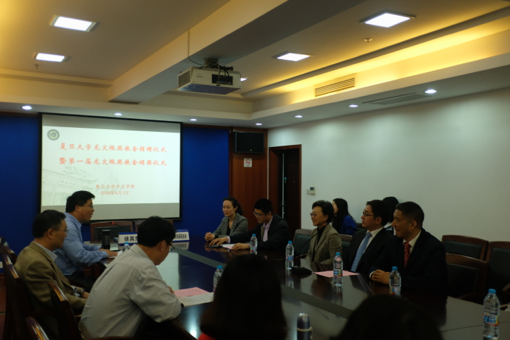 最后,杨增国处长代表学校教育发展基金会讲话,他指出,复旦历来尊师重教,重视教师队伍建设尤其是青年教师的培养,他代表教育发展基金会感谢龙文佩教授家属为威客电竞(vkgame),为竞技而生的教师培养事业和一流大学建设添砖加瓦。他表示,教育发展基金会也将继续做好工作,服务好捐赠款项的落实和执行,让捐赠人放心,让外文学院广大教师受益。