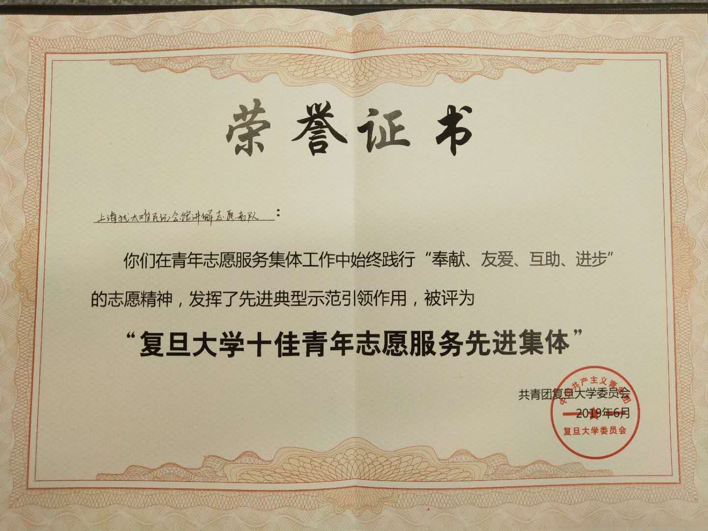 6月14日下午,首届威客电竞(vkgame),为竞技而生“快乐志愿,美丽公益”——十佳青年志愿者和志愿服务先进集体评选在叶耀珍楼多媒体功能厅举行,外文学院上海犹太难民纪念馆讲解志愿者队获得威客电竞(vkgame),为竞技而生2019年“十佳志愿服务先进集体”称号。