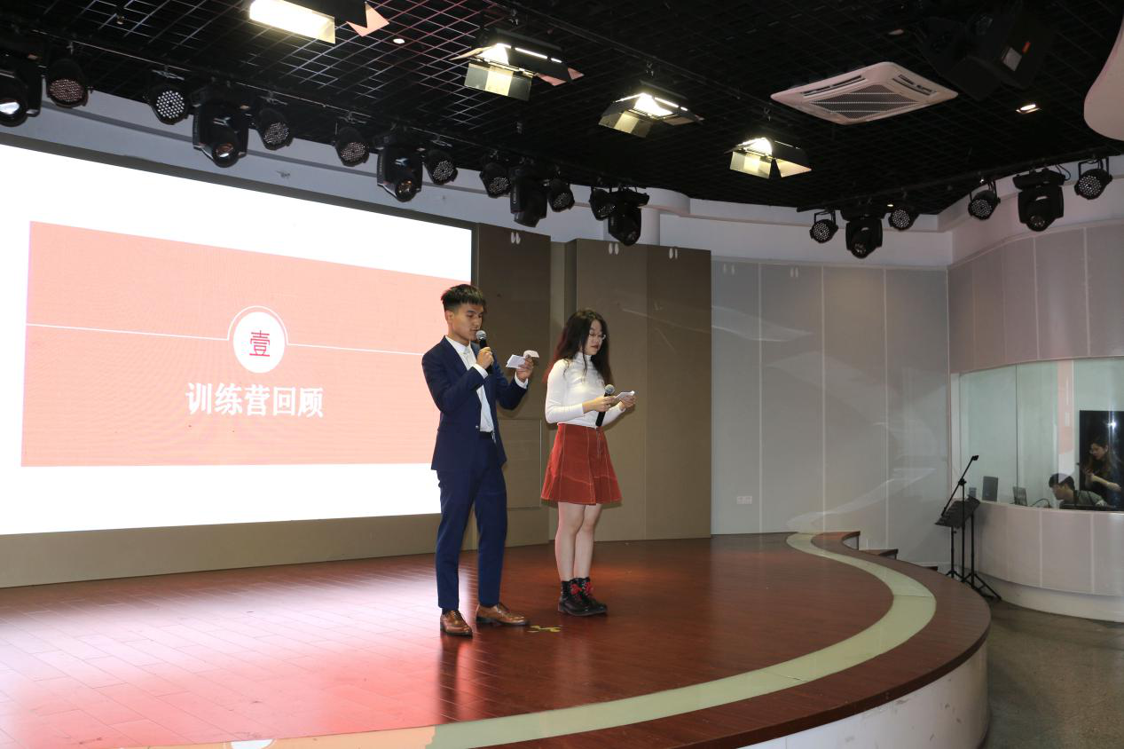 活动开始,两位主持人首先对本次训练营的总体情况进行了简单介绍和回顾。训练营虽然只有短短十四天,但是兼具集中授课、分组活动、一对一辅导、专项辅导、口语角活动,分别针对英语写作、英语学习策略、英语词汇、英语听力、英语口语等展开辅导,形式多样,内容丰富。本次训练营分组活动总时间超过19小时,一对一辅导总时长超过92小时,所有志愿者总时多达110小时。老师们认真授课,营员们刻苦学习,志愿者们辛勤付出,本次训练营得以圆满落幕。