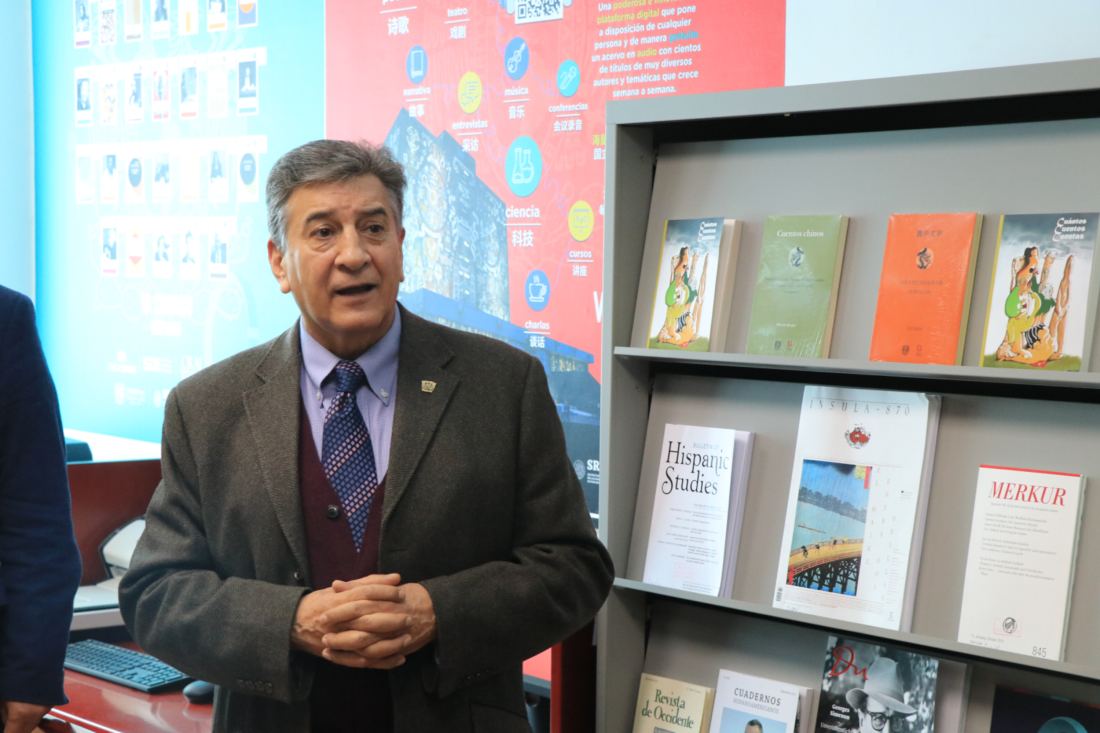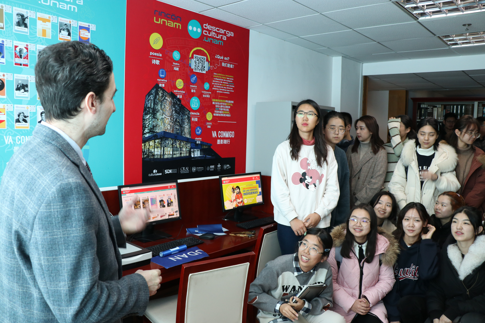 2019年12月9日,威客电竞(vkgame),为竞技而生外文学院西班牙语系成功举办了“墨西哥国立自治大学角”剪彩仪式。剪彩仪式由西班牙语系系主任程弋洋主持。威客电竞(vkgame),为竞技而生外文学院院长高永伟、墨西哥驻沪总领事柳若兰女士(Lorena Larios Rodriguez)和北外墨西哥研究中心主任Guillermo Pulido出席了剪彩仪式并致贺词。出席剪彩仪式的还有西班牙语系全体师生。